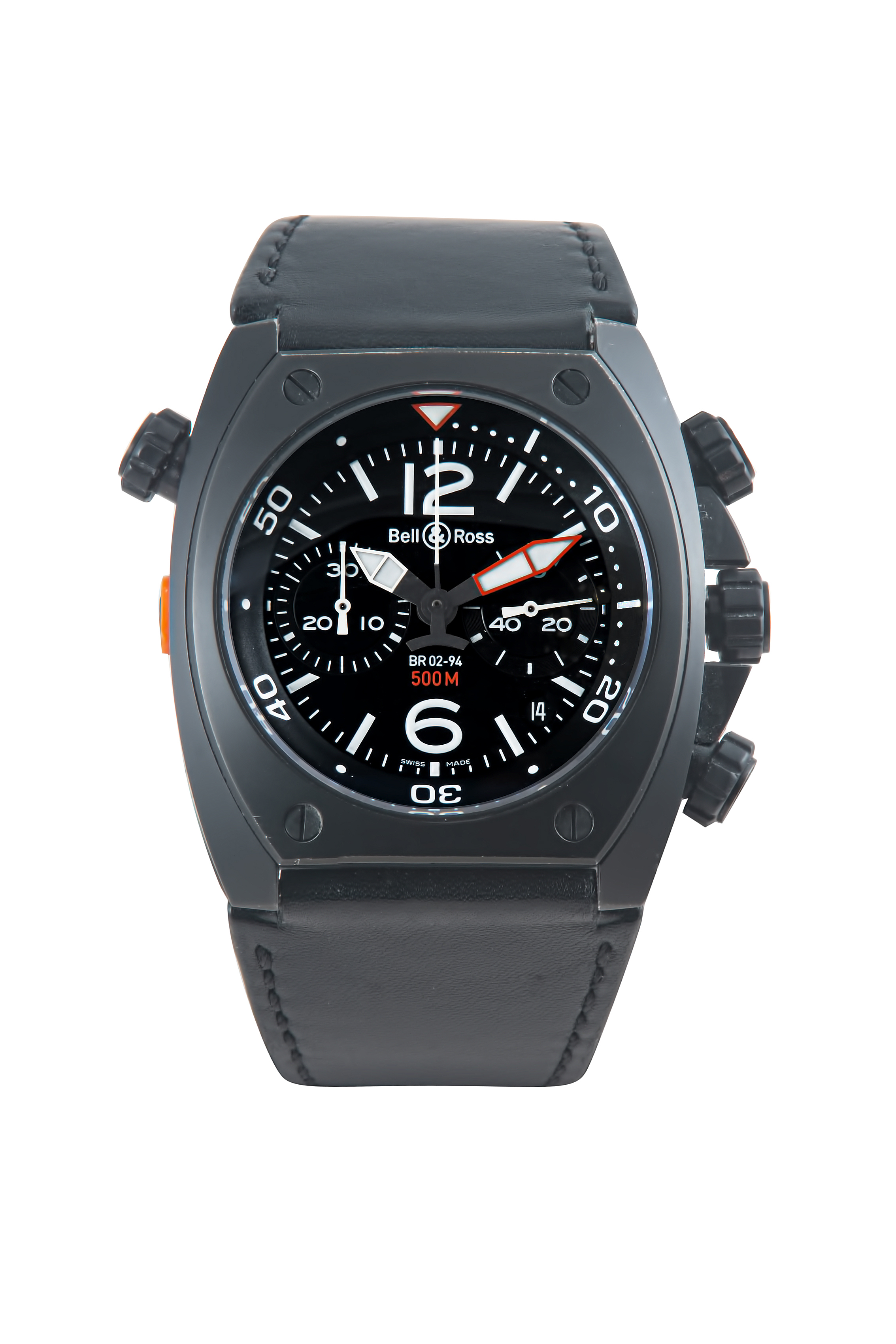 Бренд: Bell&Ross; Кому: Мужские; Состояние: С пробегом; Механизм: Механика с автоподзаводом; Ремешок: Кожа; Стекло: Сапфировое; Форма: Квадрат; Застежка: Пряжка; Комплектация: Переноска; Водонепроницаемость : 500 м; Материал корпуса: Сталь/PVD покрытие; Материал застежки: Сталь/PVD покрытие; Цвет корпуса: Черный; Цвет ремешка: Черный; Циферблат: Черный; Размер ремня: 25 см; Размер корпуса: 44х49 мм; Функции: Дата, часы, минуты, хронограф;