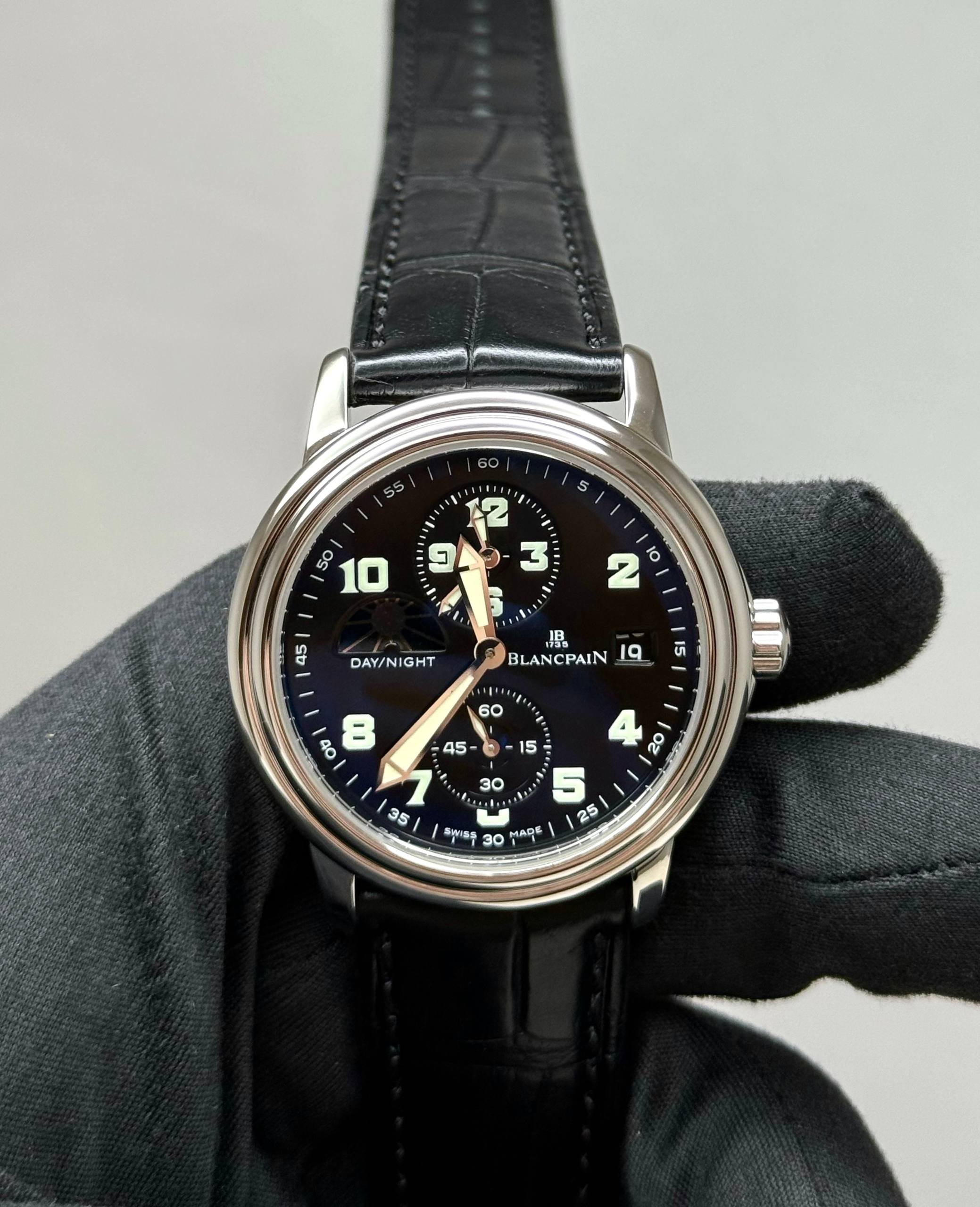 Бренд: Blancpain; Кому: Мужские; Состояние: Как новые; Механизм: Механика с автоподзаводом; Ремешок: Кожа; Материал: Сталь; Стекло: Сапфировое; Форма: Круг; Застежка: Раскладывающаяся; Материал застежки: Сталь; Комплектация: Переноска; Водонепроницаемость : 100 м; Запас хода: 100 ч; Страна: Швейцария; Циферблат: Черный; Размер ремня: 21 см; Размер корпуса: 38 мм; Функции: Дата, часы, минуты, секунды, второй часовой пояс, индикатор день / ночь;