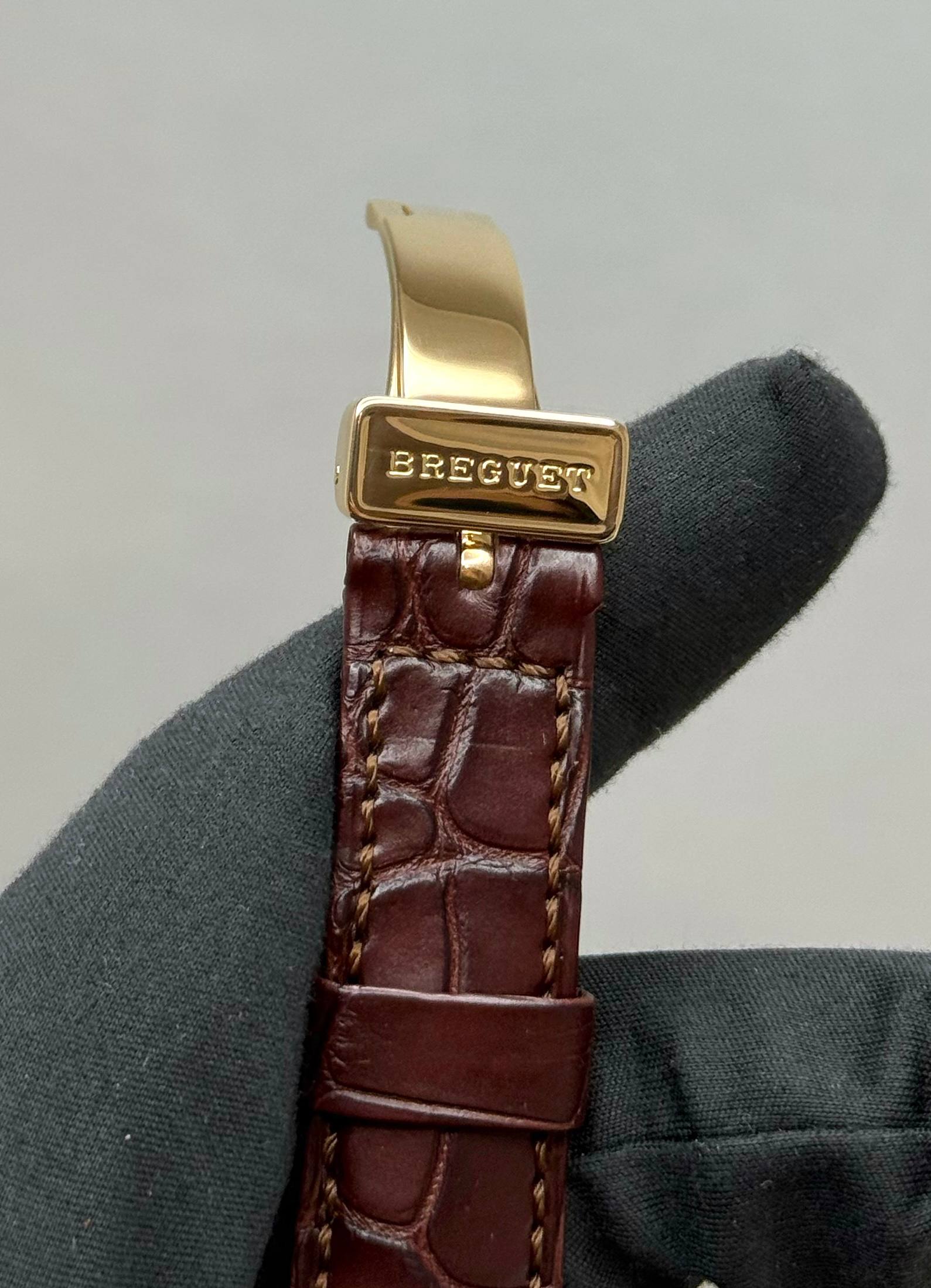 Бренд: Breguet; Кому: Мужские; Состояние: Как новые; Механизм: Механика с автоподзаводом; Ремешок: Кожа; Материал: Золото; Стекло: Сапфировое; Форма: Круг; Застежка: Раскладывающаяся; Материал застежки: Золото; Комплектация: Документы; Водонепроницаемость : 50 м; Страна: Швейцария; Цвет ремешка: Коричневый; Циферблат: Серебристый гильошированный; Размер ремня: 24.5 см; Размер корпуса: 36 мм; Функции: Дата, часы, минуты, секунды;
