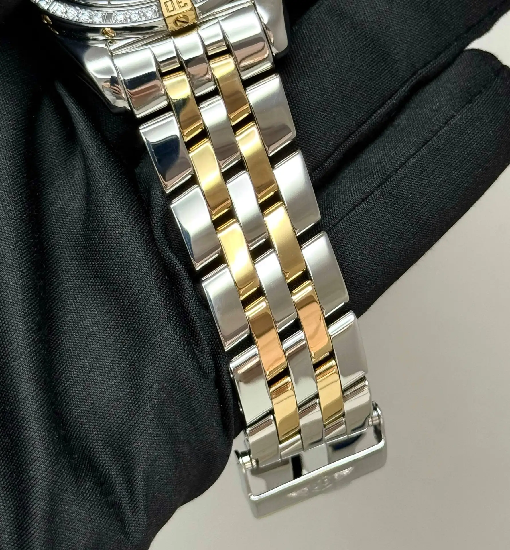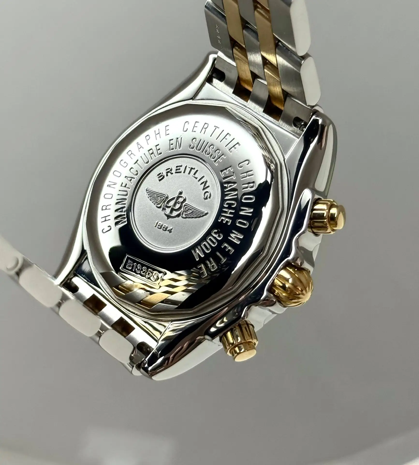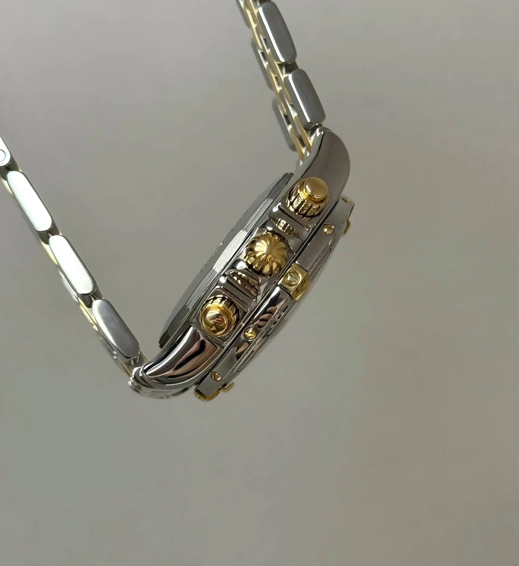 Бренд: Breitling; Кому: Мужские; Состояние: Как новые; Механизм: Механика с автоподзаводом; Ремешок: Золото/сталь; Материал: Золото/сталь; Стекло: Сапфировое; Форма: Круг; Застежка: Раскладывающаяся; Материал застежки: Сталь; Комплектация: Переноска; Водонепроницаемость : 300 м; Запас хода: 42 ч; Калибр: Breitling 13; Страна: Швейцария; Циферблат: Перламутровый; Размер браслета: 18 см; Функции: Дата, часы, минуты, секунды, хронограф, тахиметр;