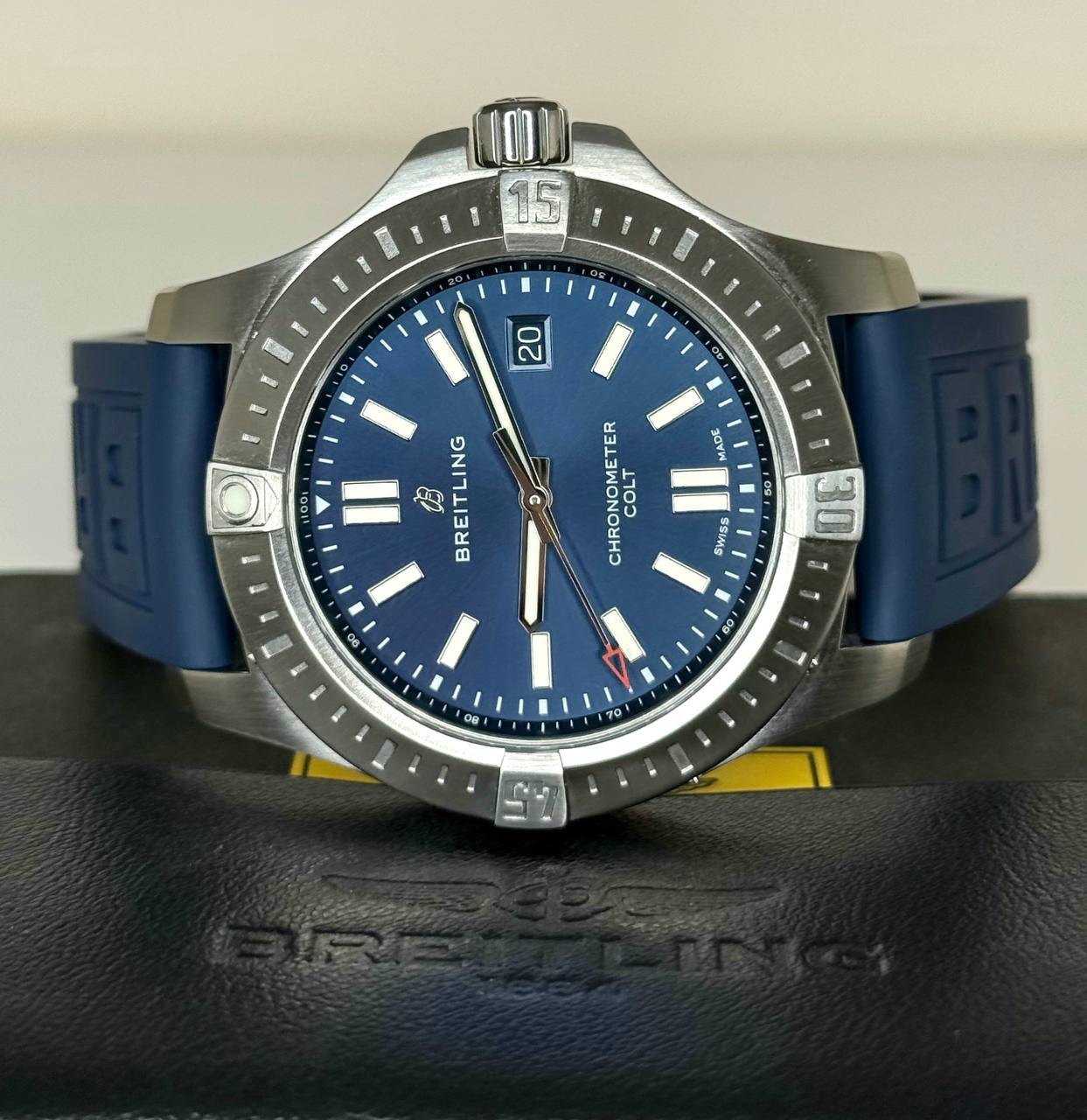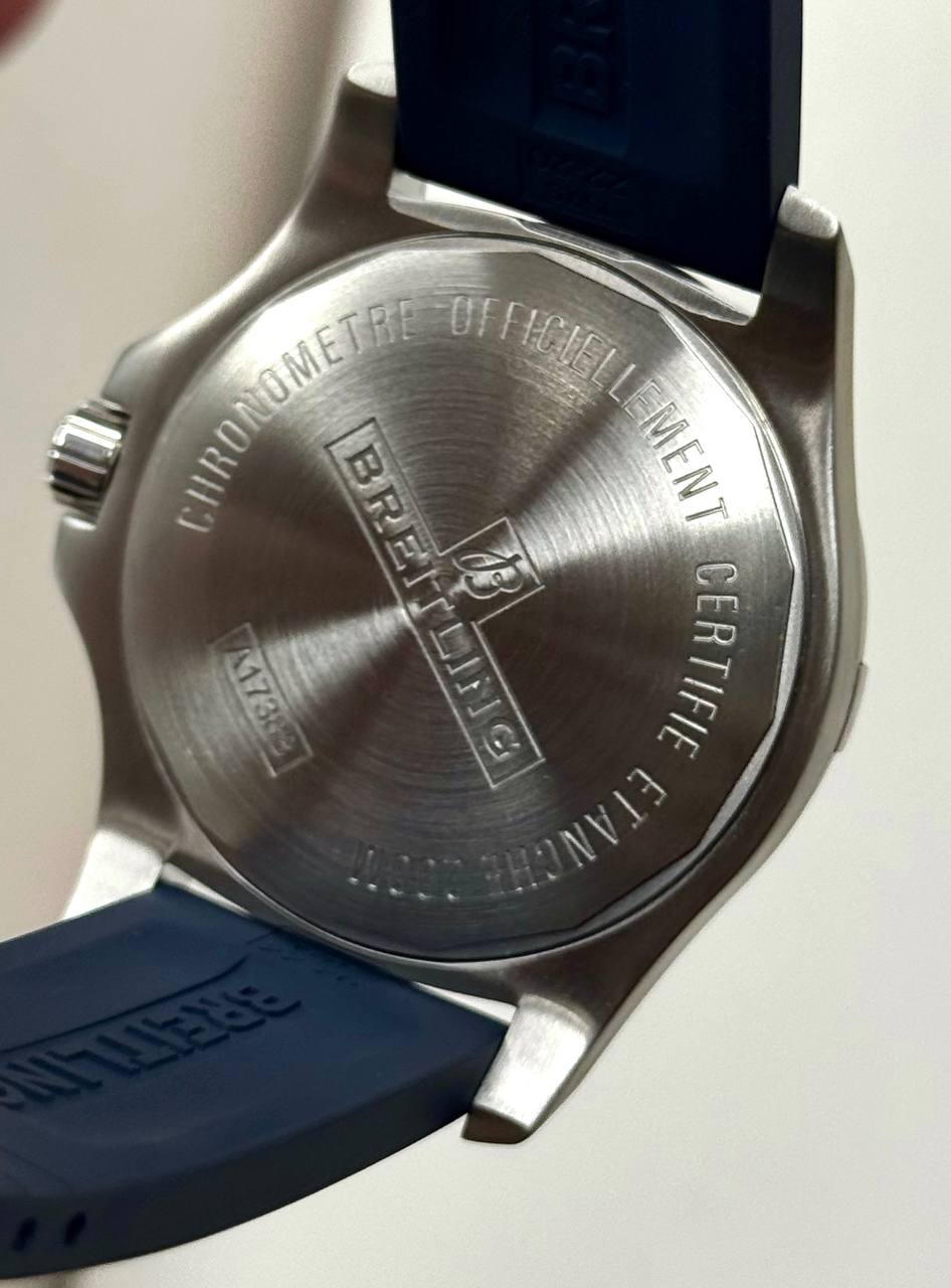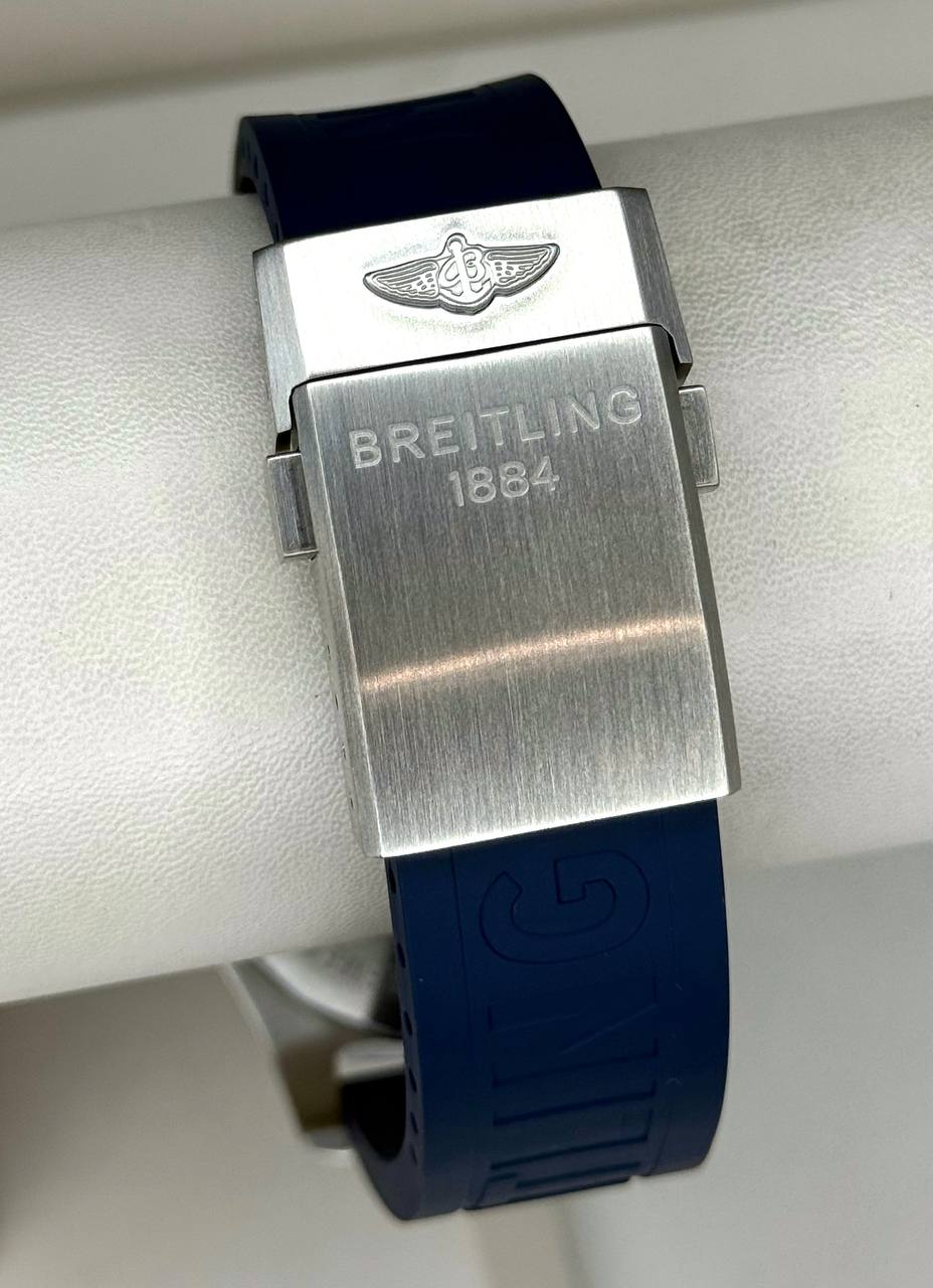 Бренд: Breitling; Кому: Мужские; Состояние: Как новые; Механизм: Механика с автоподзаводом; Ремешок: Каучук; Материал: Сталь; Стекло: Сапфировое; Форма: Круг; Застежка: Раскладывающаяся; Материал застежки: Сталь; Комплектация: Переноска, инструкция; Водонепроницаемость : 200 м; Запас хода: 40 ч; Калибр: Breitling 17; Страна: Швейцария; Цвет ремешка: Синий; Циферблат: Синий; Размер браслета: 21 см; Размер корпуса: 44 мм; Функции: Дата, часы, минуты, секунды;