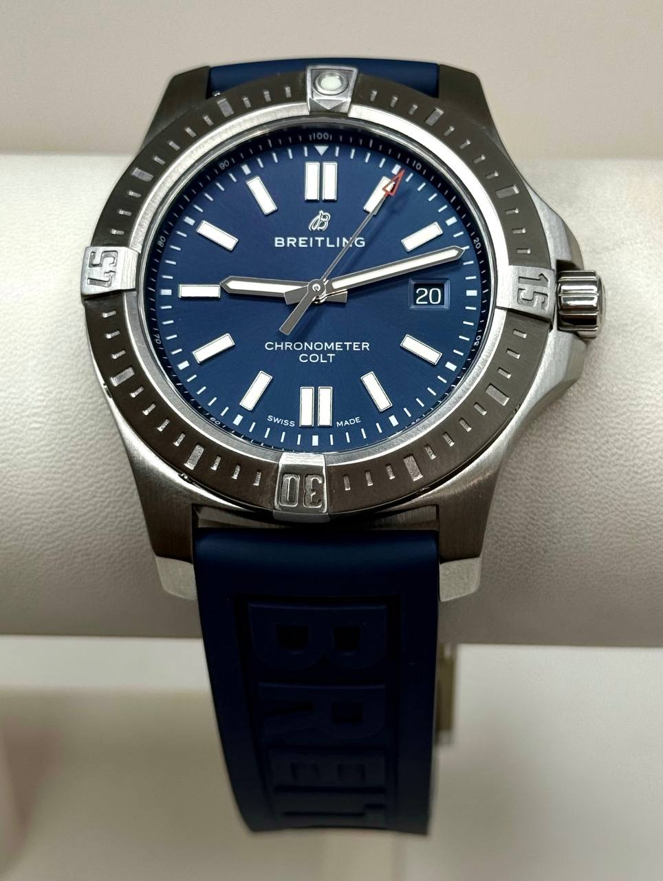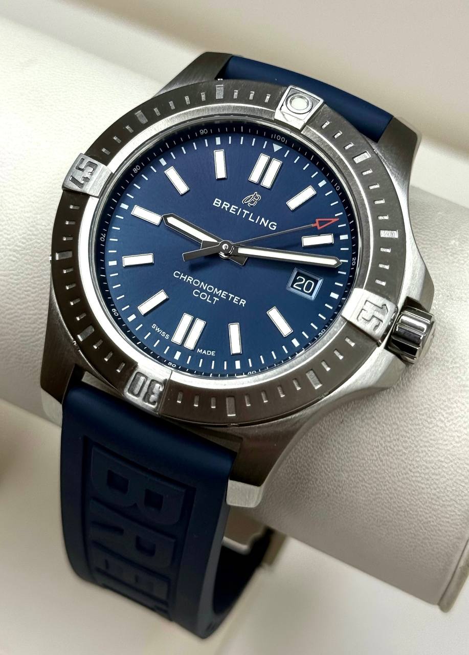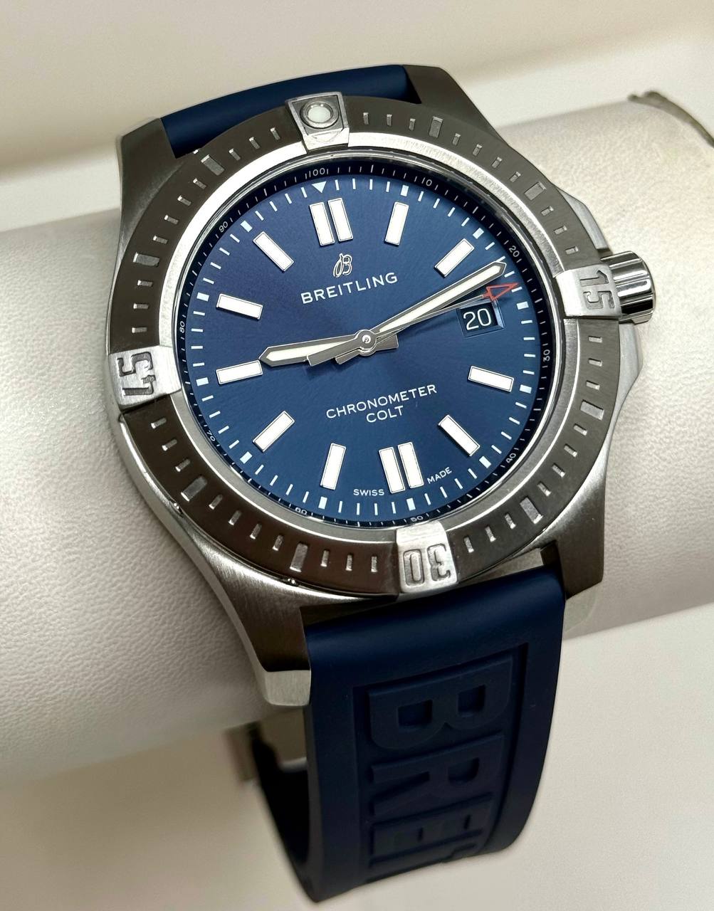Бренд: Breitling; Кому: Мужские; Состояние: Как новые; Механизм: Механика с автоподзаводом; Ремешок: Каучук; Материал: Сталь; Стекло: Сапфировое; Форма: Круг; Застежка: Раскладывающаяся; Материал застежки: Сталь; Комплектация: Переноска, инструкция; Водонепроницаемость : 200 м; Запас хода: 40 ч; Калибр: Breitling 17; Страна: Швейцария; Цвет ремешка: Синий; Циферблат: Синий; Размер браслета: 21 см; Размер корпуса: 44 мм; Функции: Дата, часы, минуты, секунды;