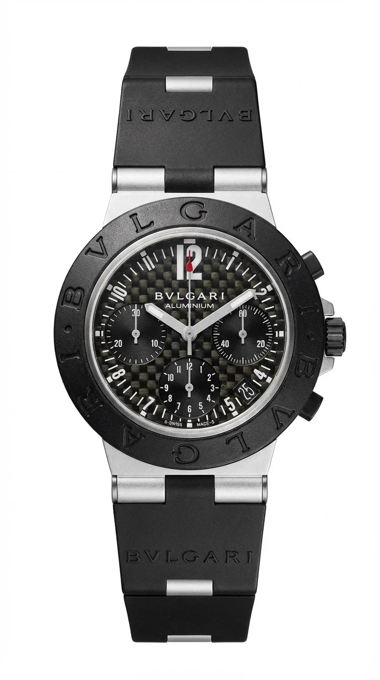 Бренд: Bvlgari; Кому: Унисекс; Состояние: С пробегом; Механизм: Механика с автоподзаводом; Ремешок: Каучук; Стекло: Сапфировое; Форма: Круг; Застежка: Раскладывающаяся; Комплектация: Переноска; Материал корпуса: Алюминий ; Материал безеля: Каучук; Цвет ремешка: Черный; Циферблат: Корбоновый; Размер ремня: 20.5 см; Размер корпуса: 38 мм; Функции: Дата, часы, минуты, секунды, хронограф;