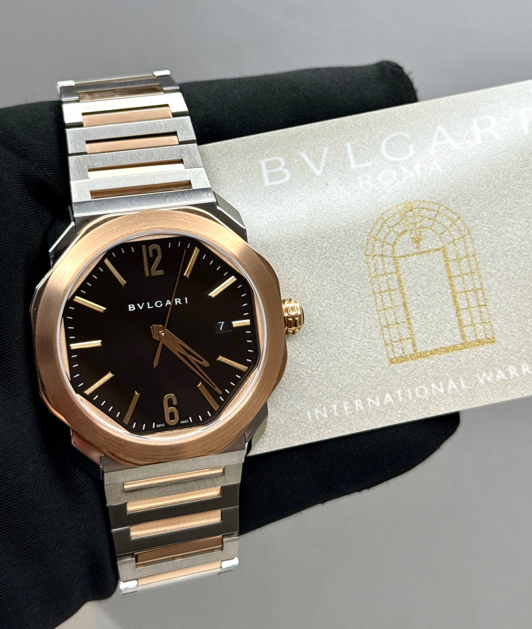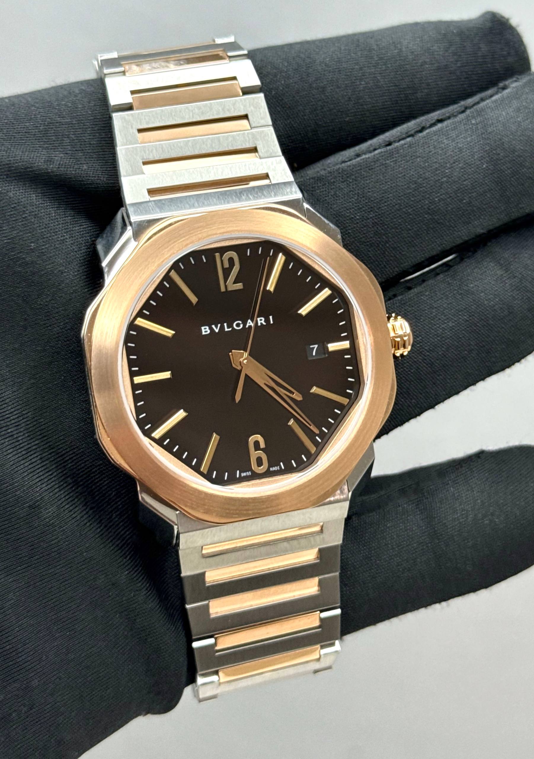 Бренд: Bvlgari; Кому: Мужские; Состояние: Как новые; Механизм: Механика с автоподзаводом; Ремешок: Золото/сталь; Материал: Золото/сталь; Стекло: Сапфировое; Форма: Круг; Застежка: Раскладывающаяся; Материал застежки: Сталь; Комплектация: Документы; Год: 2019; Водонепроницаемость : 50 м; Запас хода: 42 ч; Калибр: BVL 191; Циферблат: Коричневый; Браслет: 19 см; Размер корпуса: 41 мм; Функции: Дата, часы, минуты, секунды;