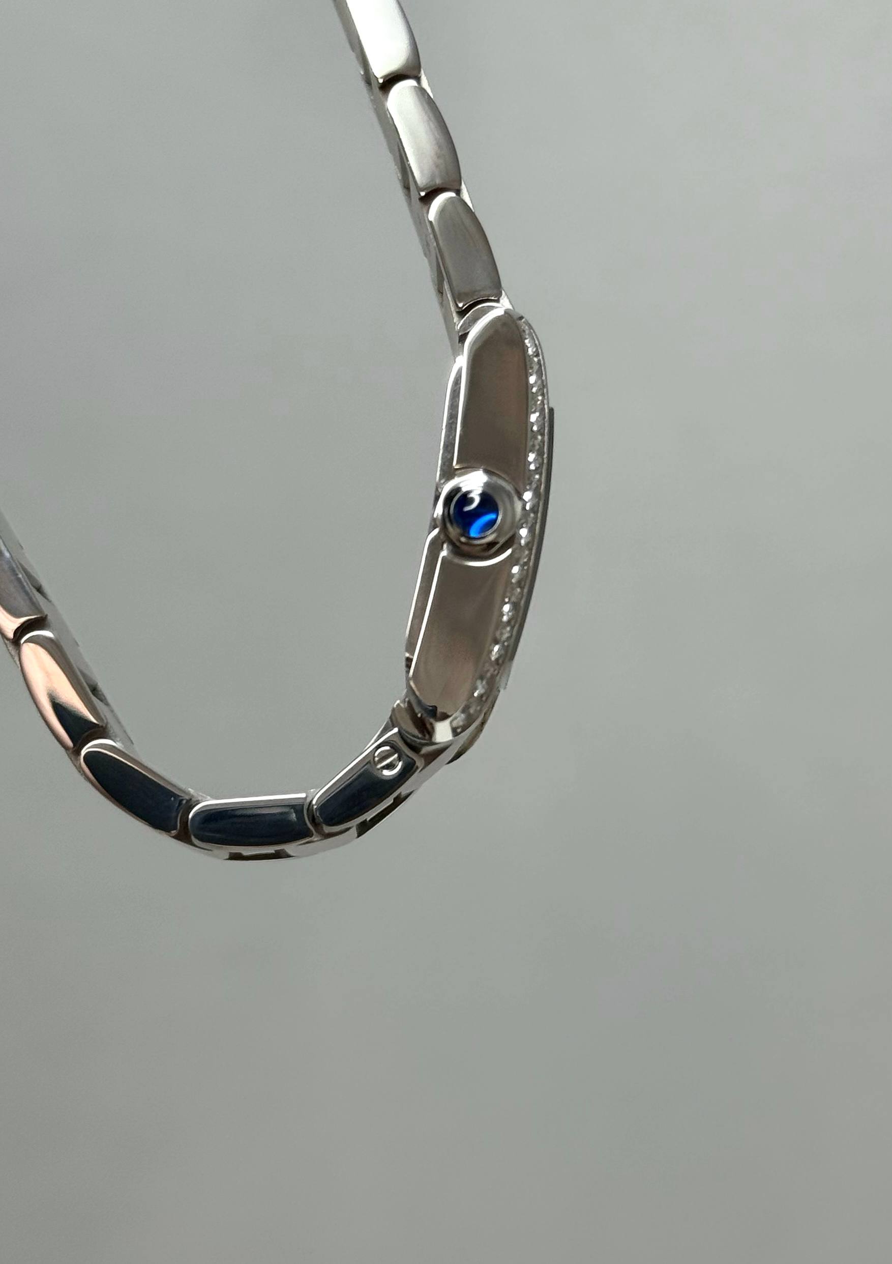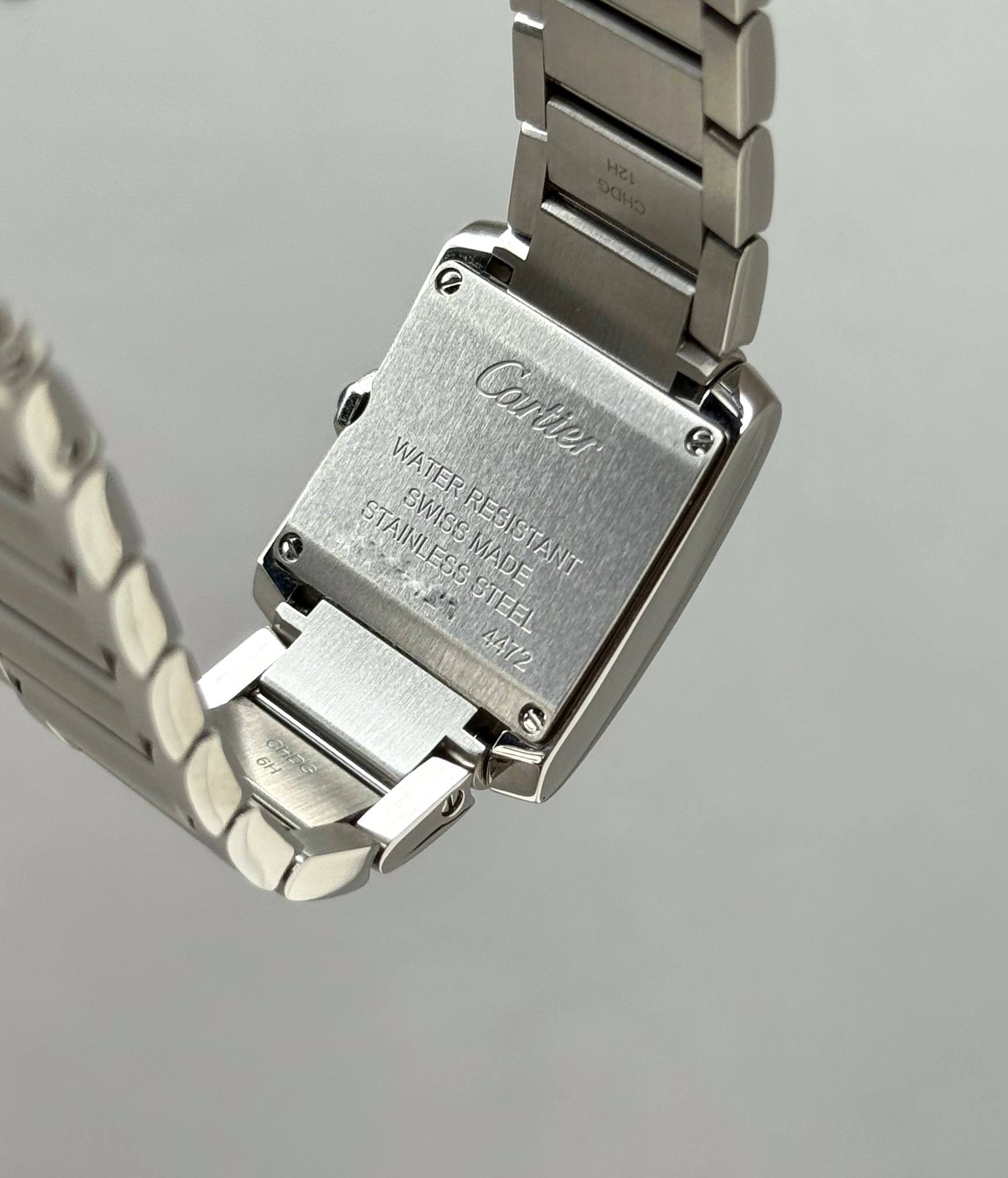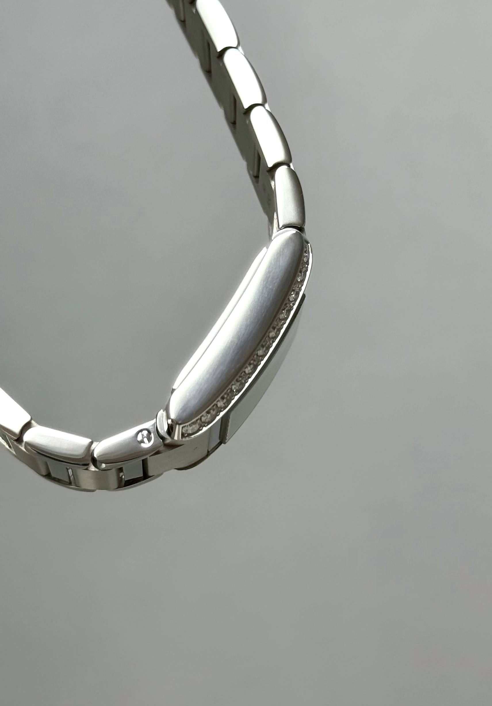 Бренд: Cartier; Кому: Женские; Состояние: Как новые; Механизм: Механика; Ремешок: Сталь; Материал: Сталь; Стекло: Сапфировое; Форма: Прямоугольник; Застежка: Раскладывающаяся; Материал застежки: Сталь; Комплектация: Коробка; Водонепроницаемость : 30 м; Безель : 22 бриллианты 0.70 ct; Циферблат: Серебристый; Браслет: 14.5 см; Размер корпуса: 21.2 х 25.7 мм; Функции: Часы, минуты;