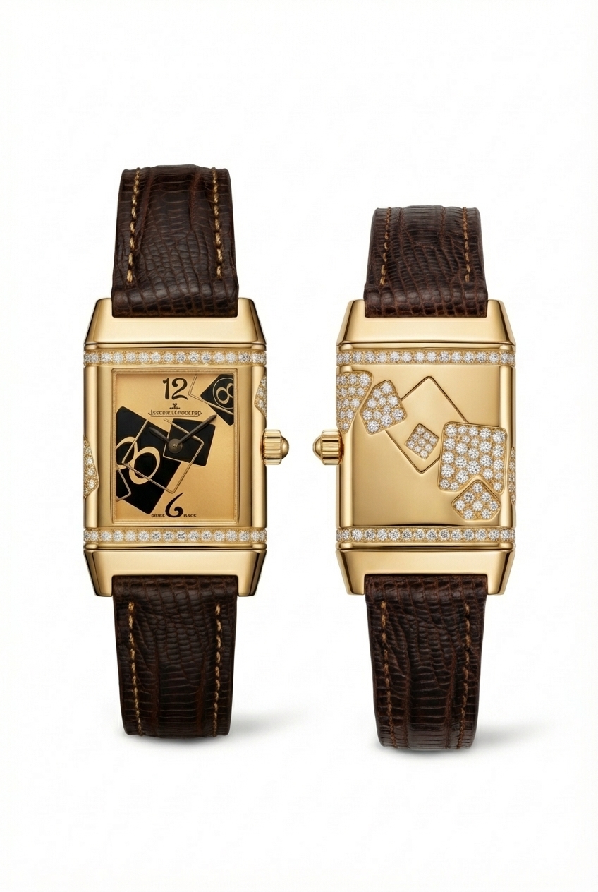 Бренд: Jaeger-LeCoultre; Кому: Женские; Состояние: С пробегом; Коллекция: Reverso; Механизм: Механика; Ремешок: Кожа; Материал: Золото; Стекло: Сапфировое; Застежка: Усложненная; Материал застежки: Золото; Водонепроницаемость (м): 3; Высота корпуса (мм): 33; Страна: Швейцария; Цвет ремешка: Коричневый; Циферблат: Золотой; Ширина корпуса (мм): 20.5; Комплектация: полный комлект; Функции: часы, минуты;