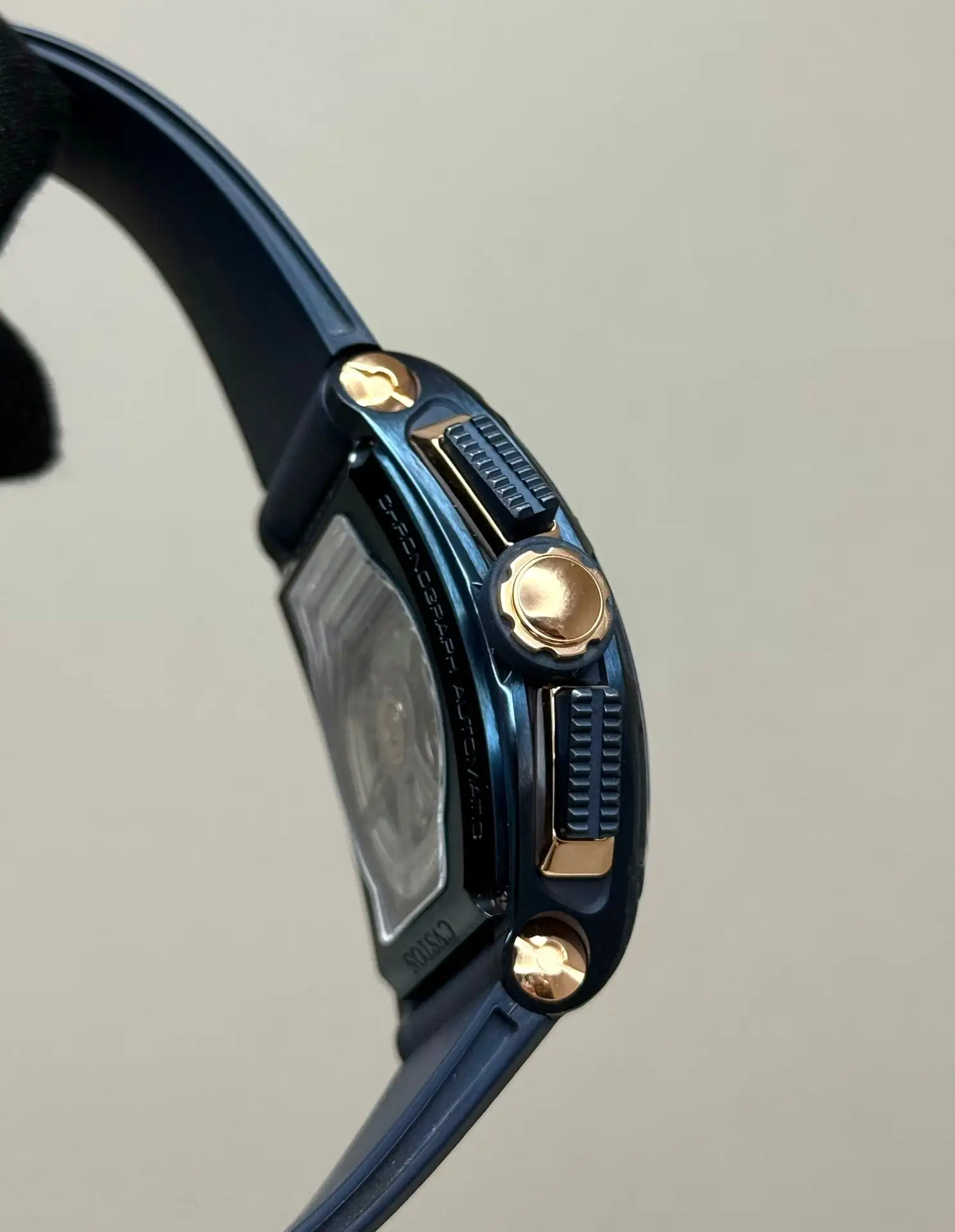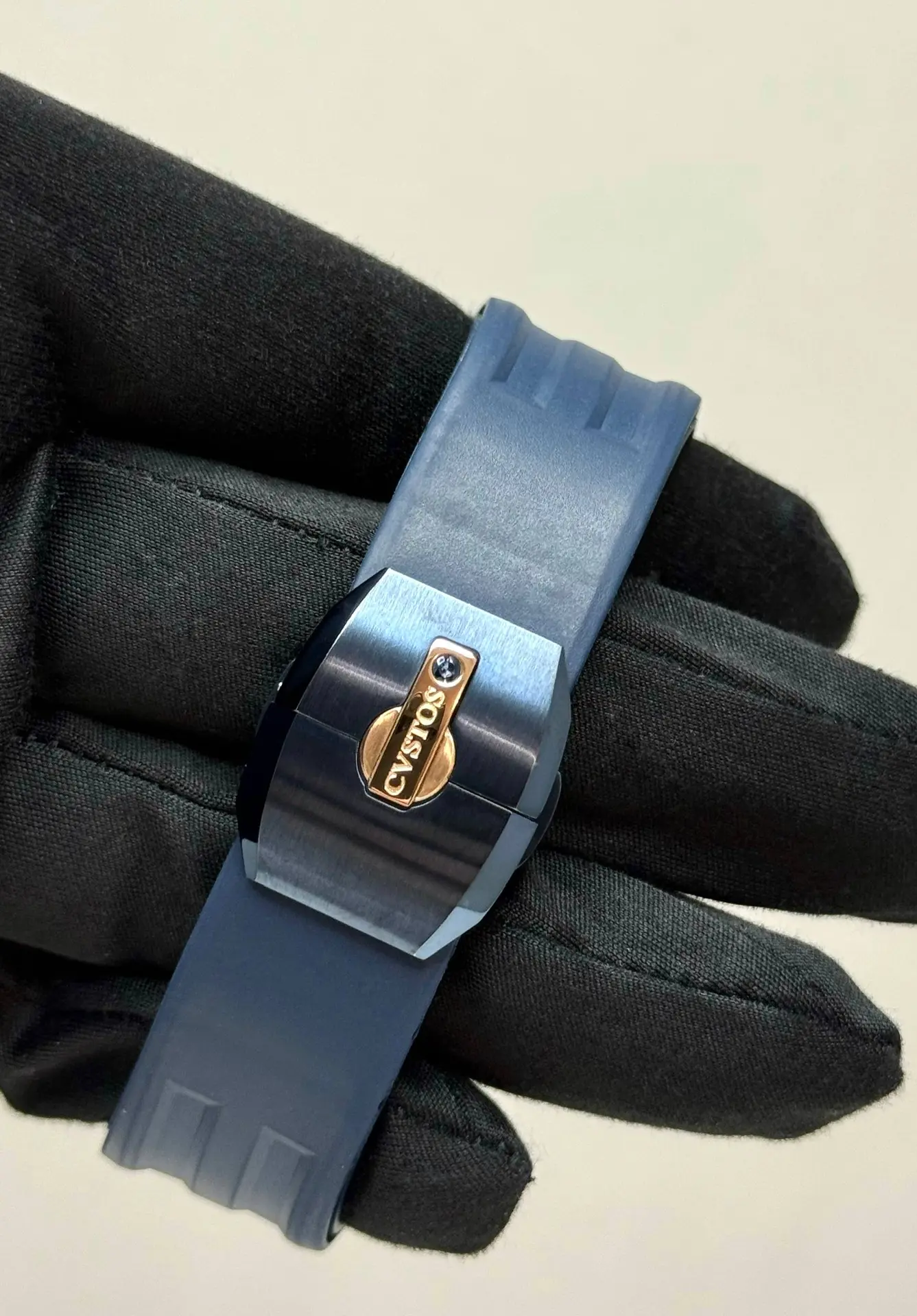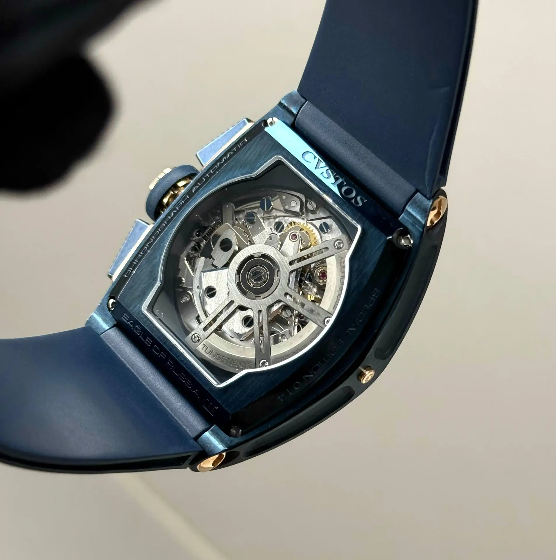 Бренд: CVSTOS; Кому: Мужские; Состояние: С пробегом; Механизм: Механика с автоподзаводом; Стекло: Сапфировое; Форма: Бочка; Застежка: Раскладывающаяся; Материал застежки: Сталь; Комплектация: Переноска; Водонепроницаемость : 30 м; Циферблат: Синий с золотистым; Размер ремня: 17.5 см; Размер корпуса: 41 х 53.7 мм; Функции: Дата, часы, минуты, секунды, хронограф;