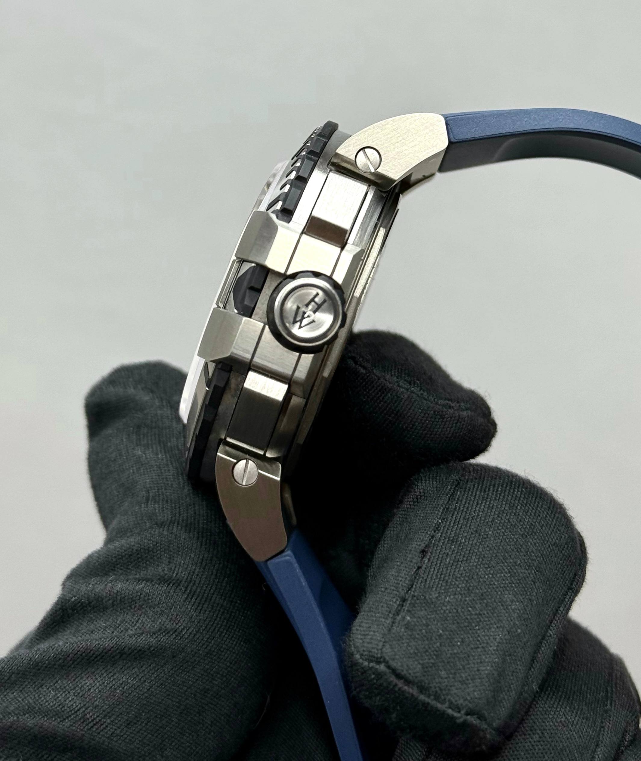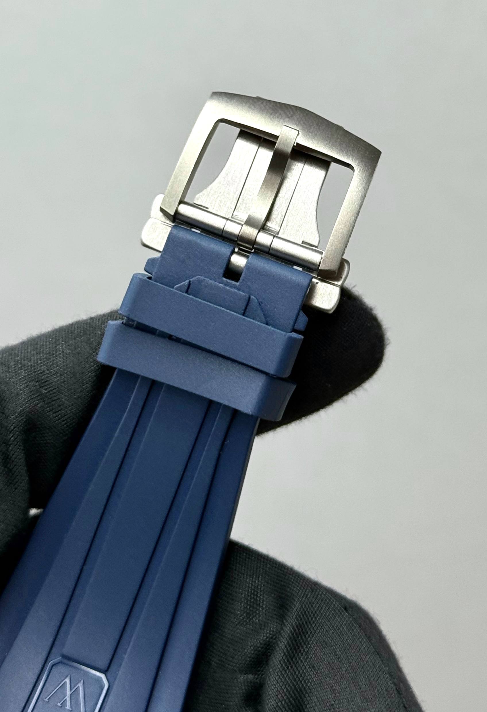 Бренд: Harry Winston; Кому: Мужские; Состояние: Как новые; Механизм: Механика с автоподзаводом; Стекло: Сапфировое; Комплектация: коробка; Материал: Залиум; Водонепроницаемость (м): 50 м; Запас хода: 42ч; Калибр: HW1001; Циферблат: Синий; Размер: 44 мм; Функции: Дата, часы, минуты, секунды, Хронограф;