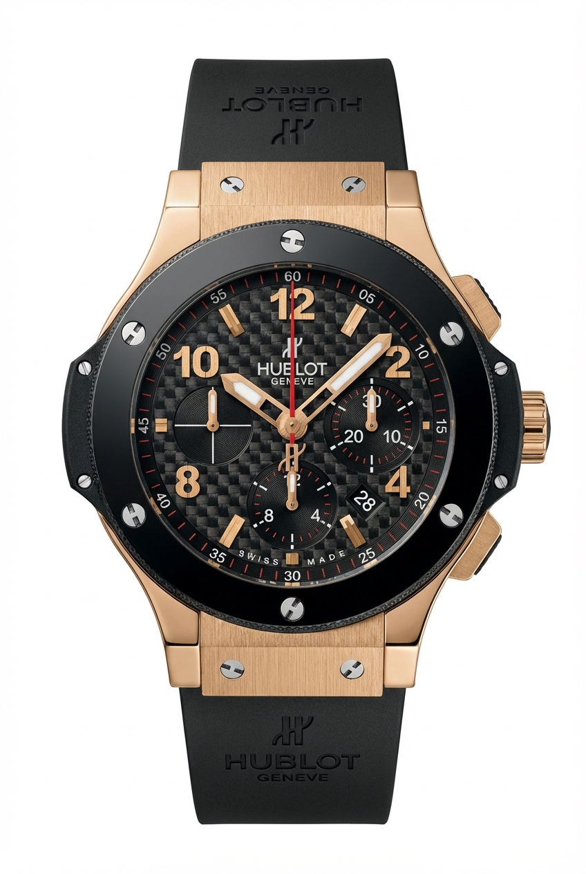 Бренд: Hublot; Кому: Мужские; Состояние: Как новые; Механизм: Механика с автоподзаводом; Ремешок: Каучук; Материал: Розовое золото; Стекло: Сапфировое; Форма: Круг; Застежка: Раскладывающаяся; Указатели: Золото; Запас хода: 42h; Калибр: HUB4100; Цвет ремешка: Черный; Циферблат: Черный; Размер корпуса: 44мм; Функции: Часы, минуты, дата, хронограф;