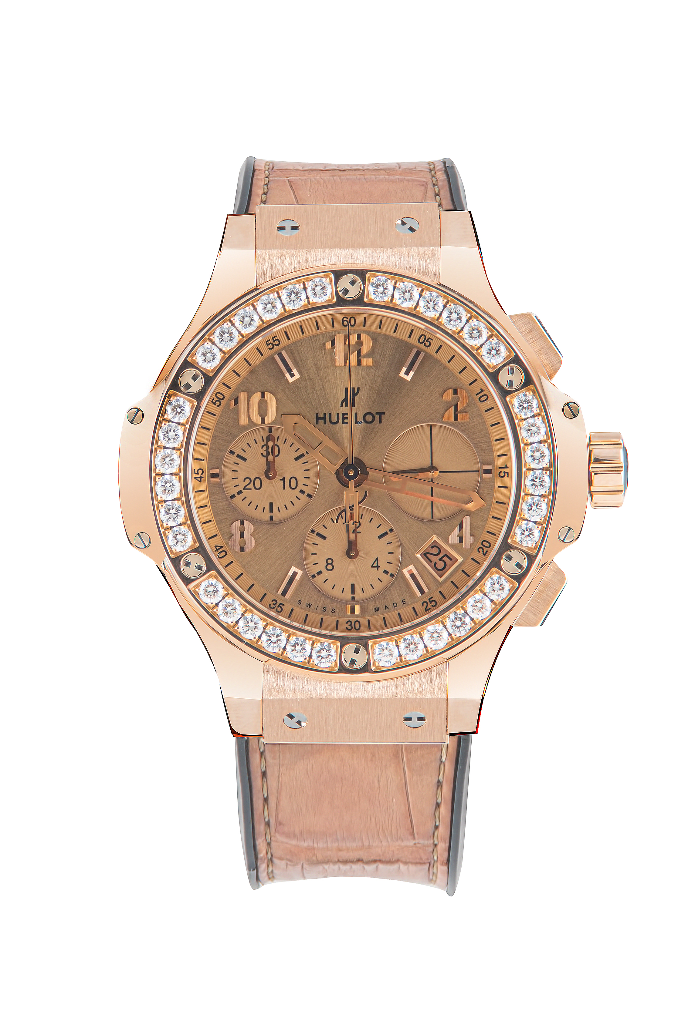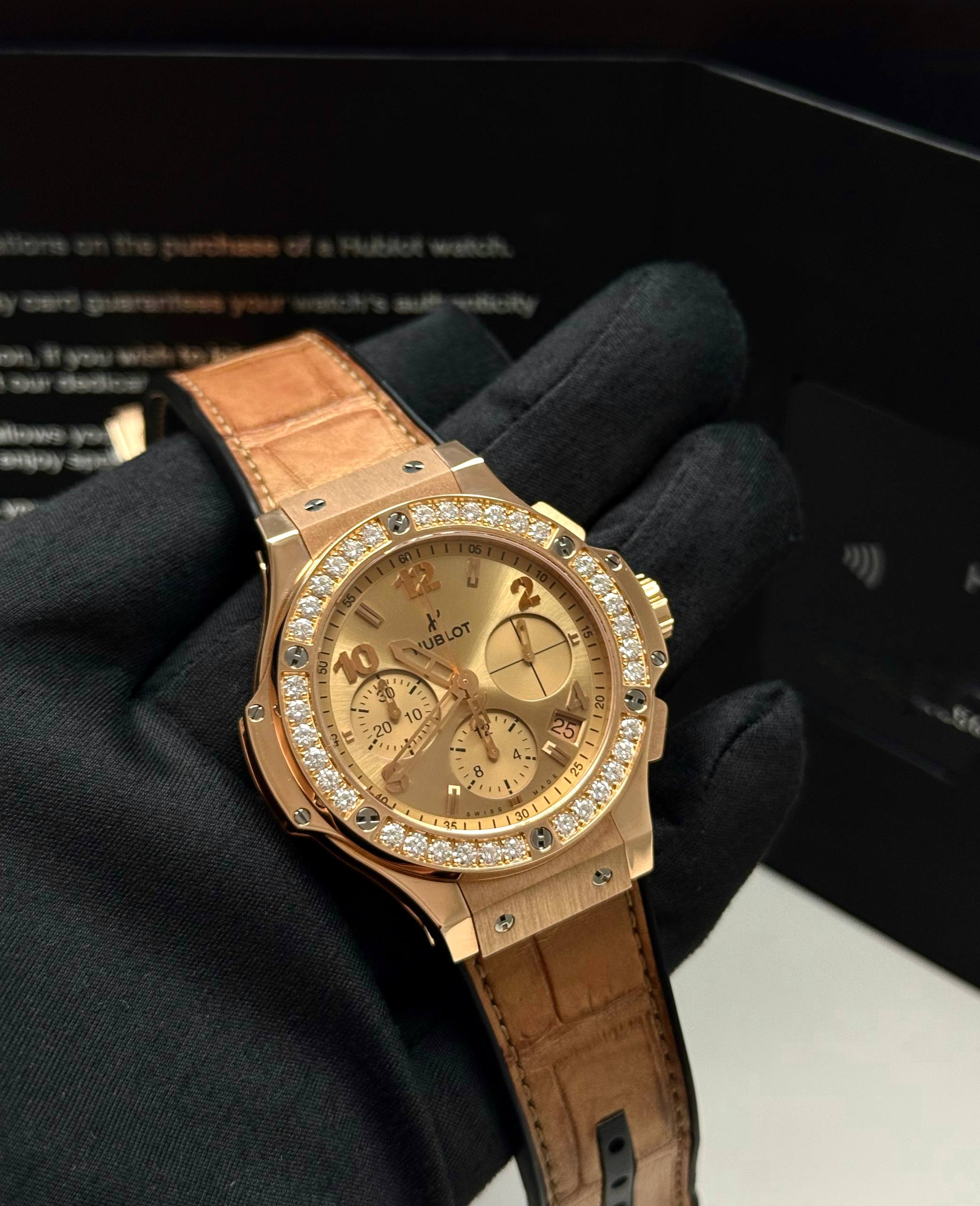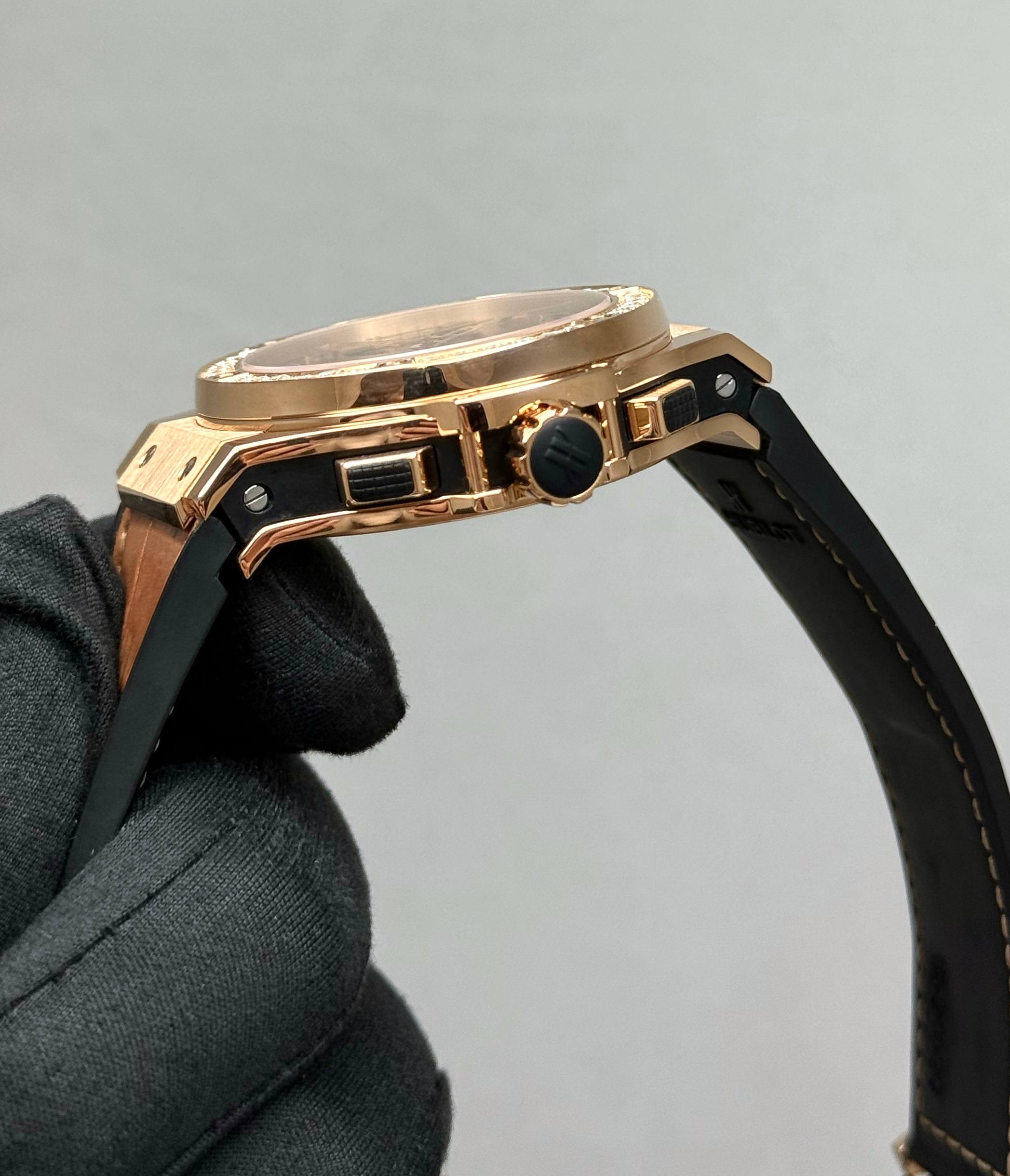 Бренд: Hublot; Кому: Унисекс; Состояние: Как новые; Механизм: Механика с автоподзаводом; Ремешок: Комбинированный; Материал: Золото; Стекло: Сапфировое; Форма: Круг; Застежка: Раскладывающаяся; Материал застежки: Золото/сталь; Комплектация: Полный комплект; Вес: 153 гр; Страна: Швейцария; Циферблат: Золотистый; Размер корпуса: 44 мм; Функции: Дата, часы, минуты, секунды, хронограф;