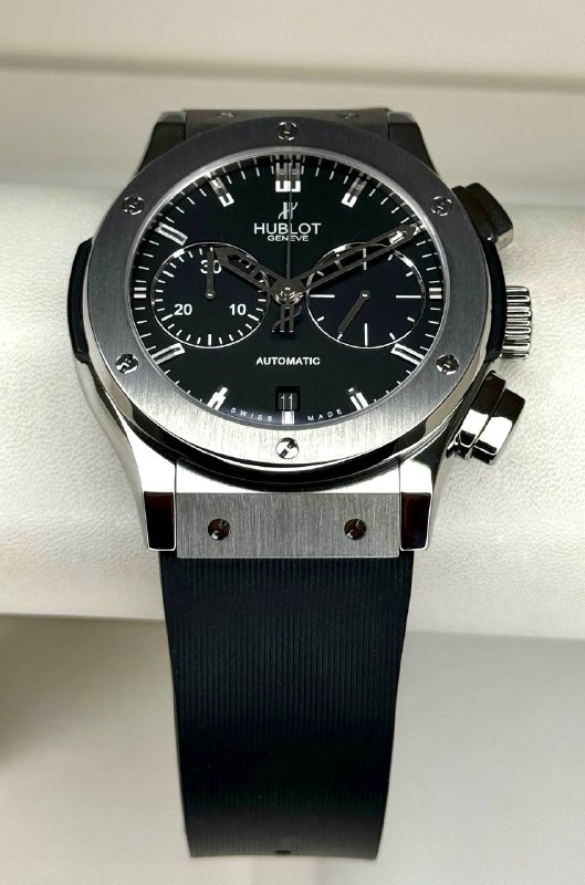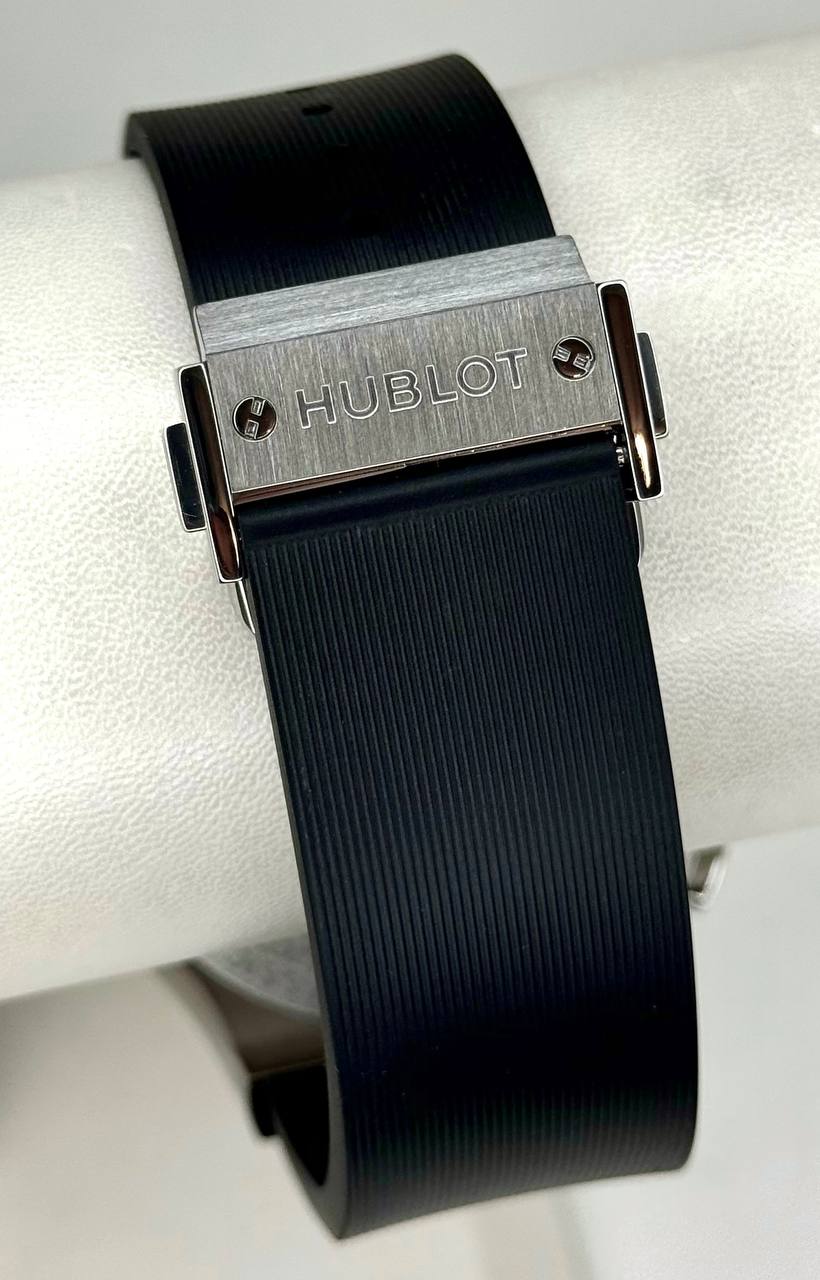 Бренд: Hublot; Кому: Мужские; Состояние: Как новые; Механизм: Механика с автоподзаводом; Ремешок: Каучук; Комплектация: одни часы; Материал: Титан; Водонепроницаемость (м): 50; Запас хода: 42 часа; Калибр: HUB 1143; Циферблат: Черный; Размер: 45 мм; Функции: Дата, часы, минуты, секунды, Хронограф;