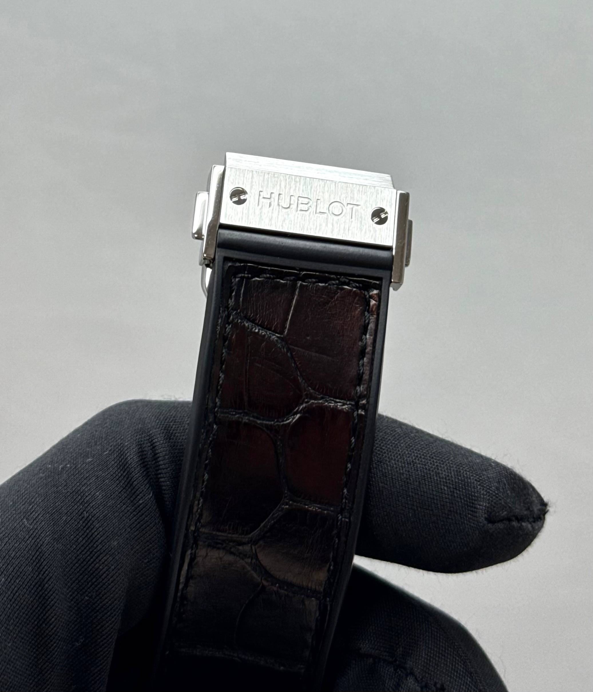 Бренд: Hublot; Кому: Мужские; Состояние: Как новые; Механизм: С ручным заводом; Ремешок: Комбинированный; Материал: Титан; Стекло: Сапфировое; Форма: Круг; Застежка: Раскладывающаяся; Материал застежки: Сталь; Комплектация: Документы, переноска; Водонепроницаемость : 50 м; Запас хода: 90 ч; Калибр: HUB1300; Страна: Швейцария; Цвет корпуса: Серый; Цвет ремешка: Черный; Циферблат: Скелетон; Размер корпуса: 45 мм; Функции: Часы, минуты, секунды;