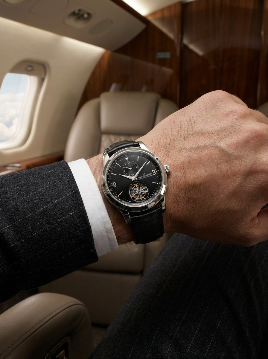 Бренд: Jaeger-LeCoultre; Кому: Мужские; Состояние: Как новые; Механизм: Механика с автоподзаводом; Ремешок: Кожа; Материал: Платина; Стекло: Сапфировое; Форма: Круг; Застежка: Раскладывающаяся; Материал застежки: Белое золото; Комплектация: Документы, переноска; Год: 2019; Водонепроницаемость : 50 м; Запас хода: 48 ч; Калибр: 978; Вес: 179.2 гр; Страна: Швейцария; Цвет ремешка: Черный; Циферблат: Черный; Размер ремня: 20.5 см; Функции: Дата, часы, минуты, секунды, второй часовой пояс;