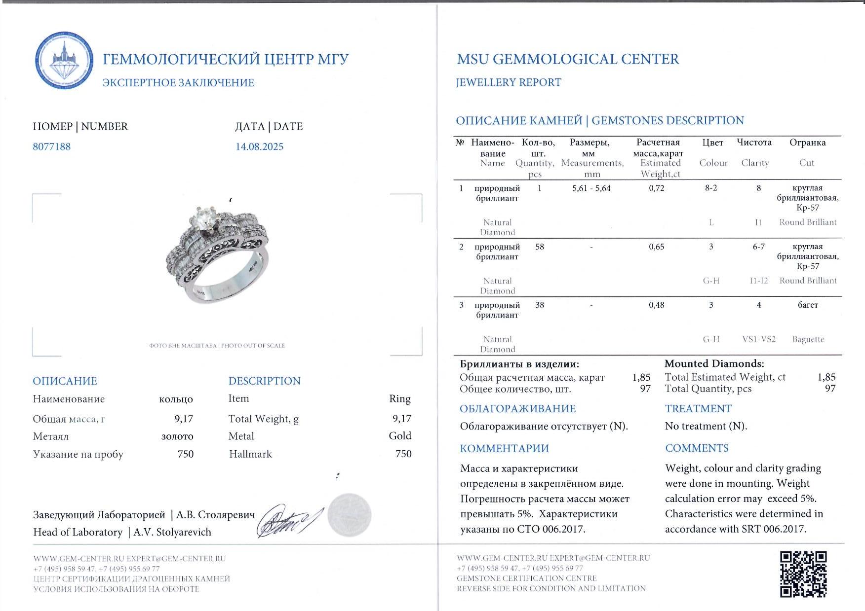 Бренд: No Name; Тип: Кольцо; Кому: Женские; Состояние: Как новые; Размер: 55 / 17.4; Материал: Белое золото, 97 бриллиантов; Проба для драгметала: 750; Комплектация: Коробка, сертификат МГУ; Вес: 9.17 гр;