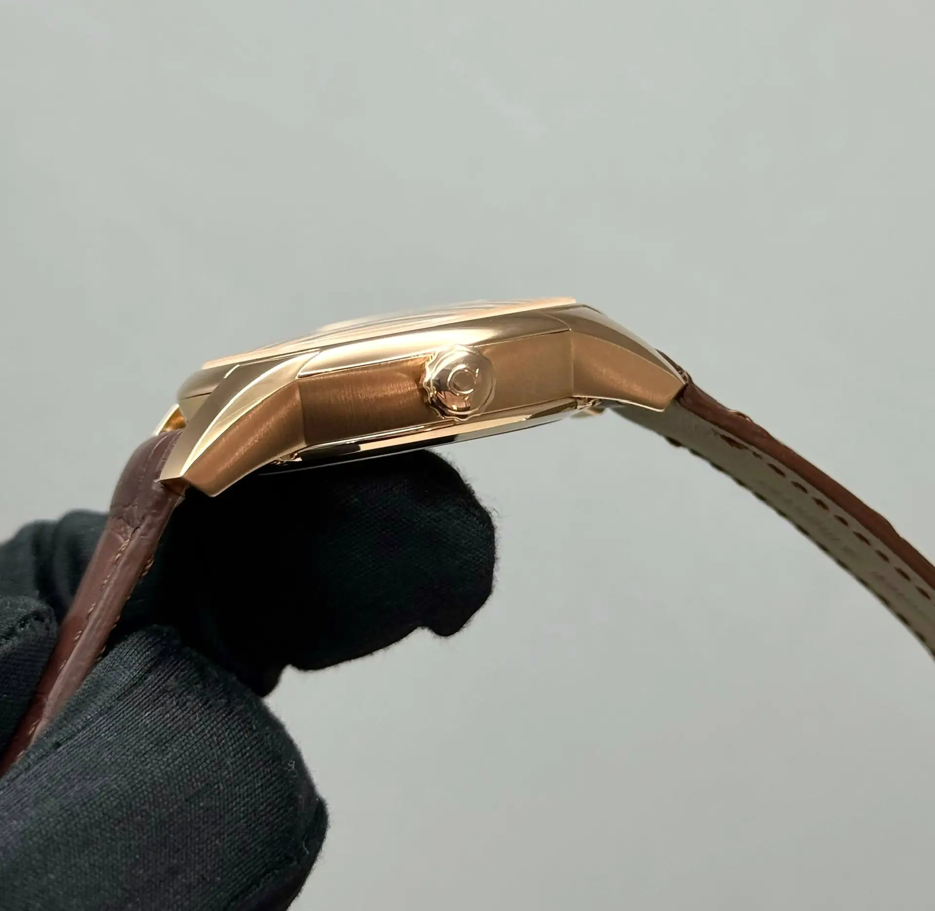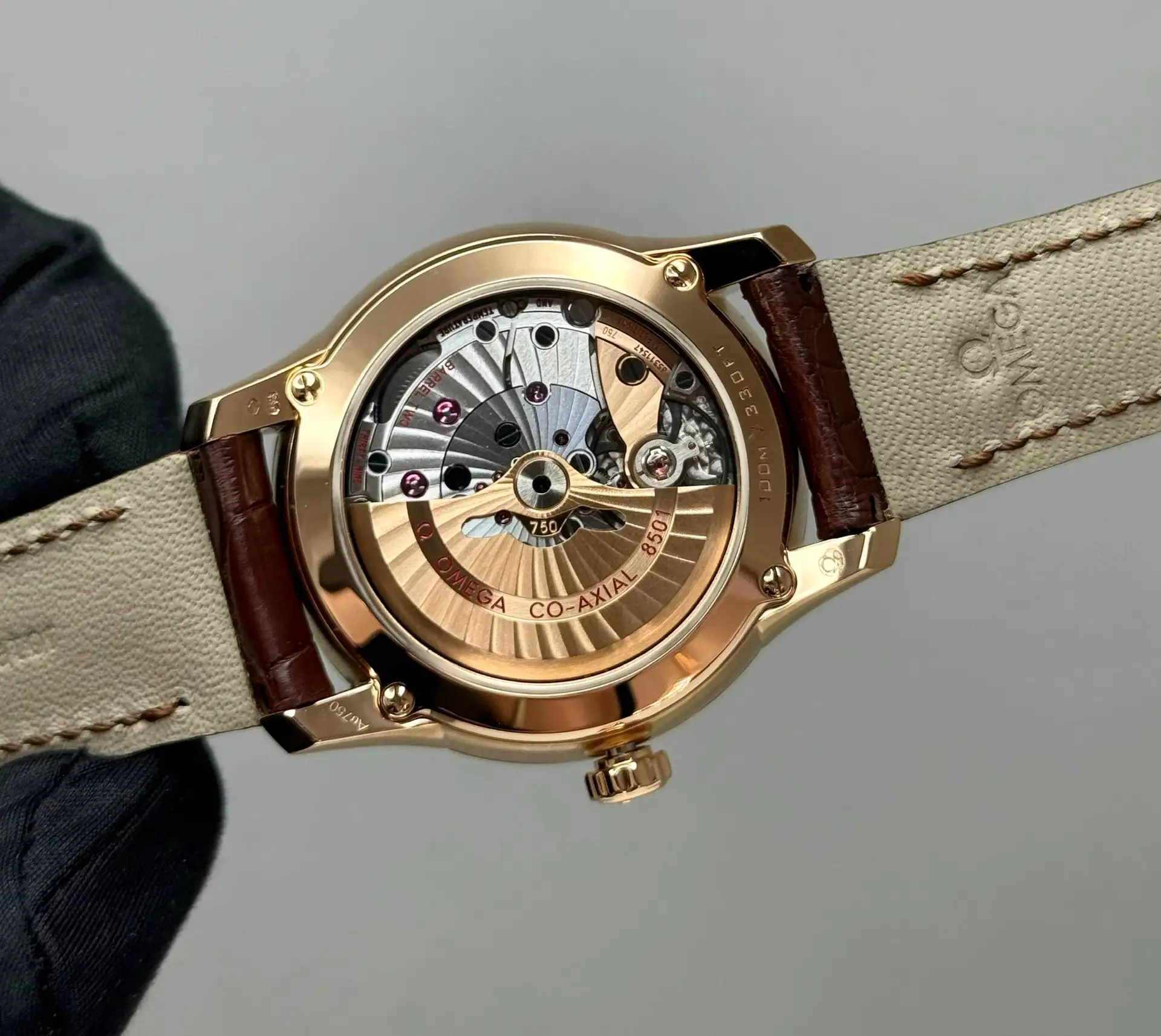 Бренд: Omega; Кому: Мужские; Состояние: Как новые; Механизм: Механика с автоподзаводом; Ремешок: Кожа; Материал: Розовое золото; Стекло: Сапфировое; Форма: Круг; Застежка: Раскладывающаяся; Комплектация: Переноска; Вес: 121.65 гр; Водонепроницаемость : 100 м; Запас хода: 60 ч; Калибр: Omega 8501; Страна: Швейцария; Цвет ремешка: Коричневый; Циферблат: Коричневый; Размер ремня: 21.5 см; Размер корпуса: 41 мм; Функции: Дата, часы, минуты, секунды;
