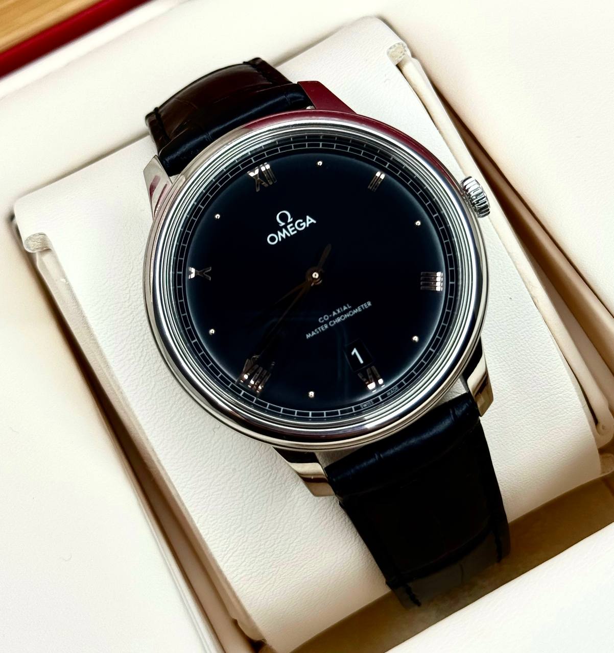 Бренд: Omega; Кому: Мужские; Состояние: Новые; Механизм: Механика с автоподзаводом; Ремешок: Кожа; Стекло: Сапфировое; Комплектация: Абсолютно новые 2025 год,полный комплект!; Материал: Нержавеющая сталь; Водонепроницаемость (м): 30; Запас хода: 55 часов; Циферблат: черный; Размер: 40 мм; Функции: Дата,часы,минуты,секунды;