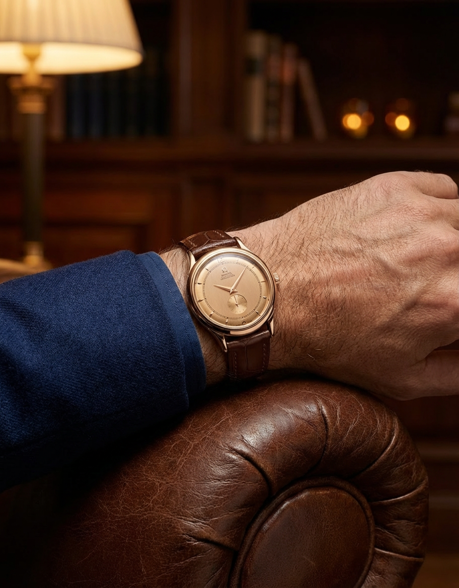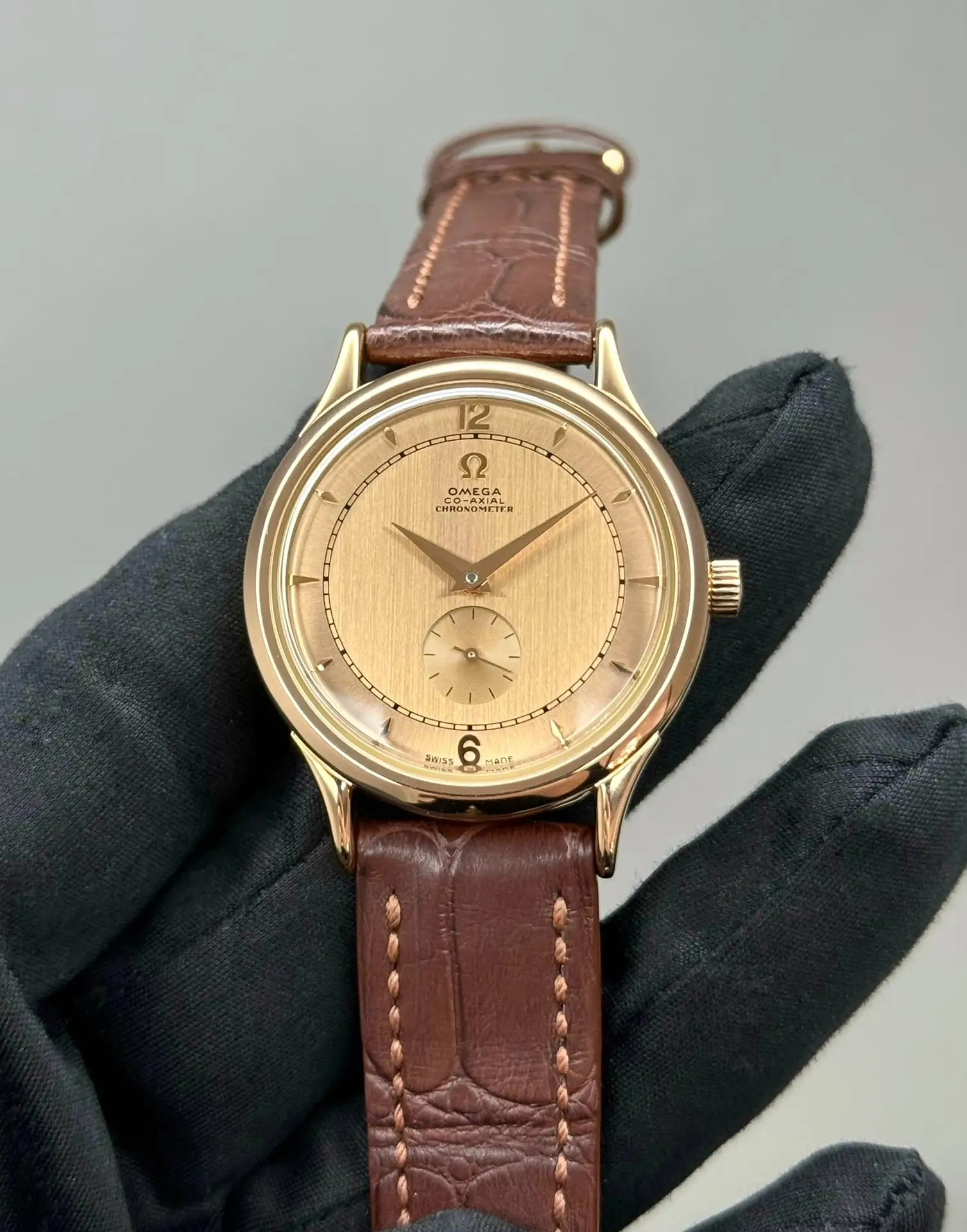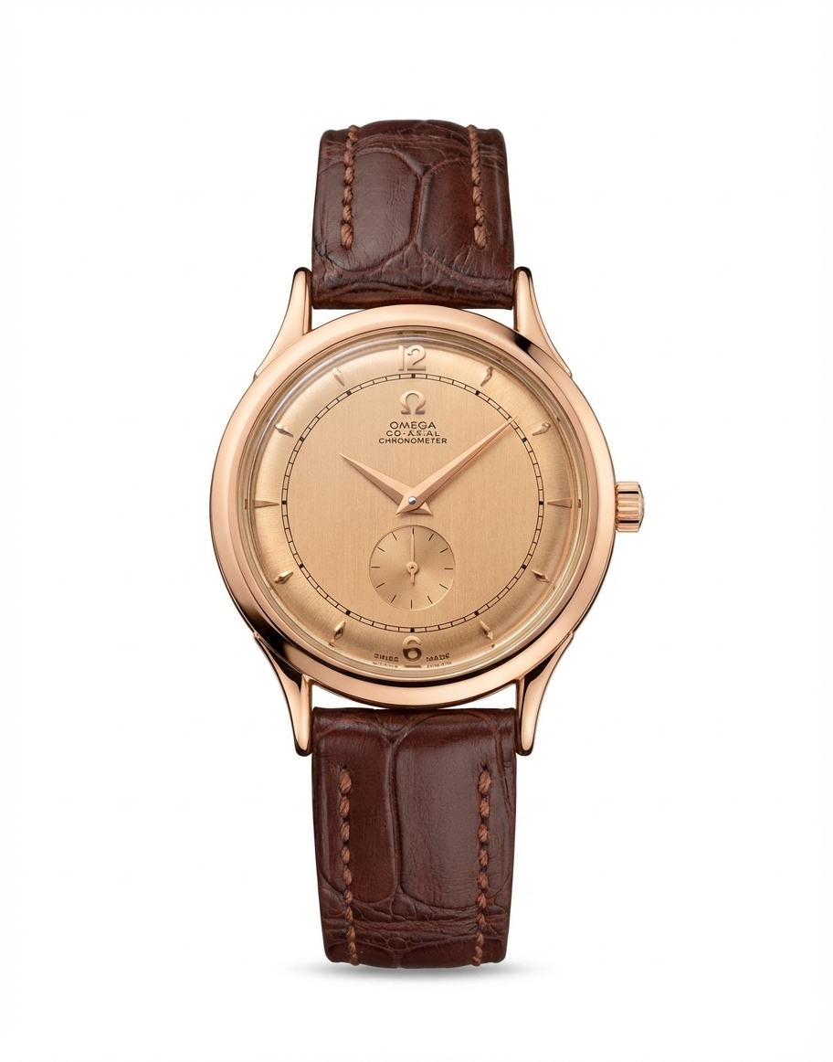 Бренд: Omega; Кому: Унисекс; Состояние: Как новые; Механизм: Механика с автоподзаводом; Ремешок: Кожа; Стекло: Сапфировое; Форма: Круг; Застежка: Пряжка; Комплектация: Переноска; Материал: Розовое золото; Водонепроницаемость : 30 м; Запас хода: 48 ч; Калибр: Omega 2202; Страна: Швейцария; Размер ремня: 20.5 мм; Размер корпуса: 36.2 мм; Описание : Лимитированная серия 1948 шт; Функции: Часы, минуты, секунды;