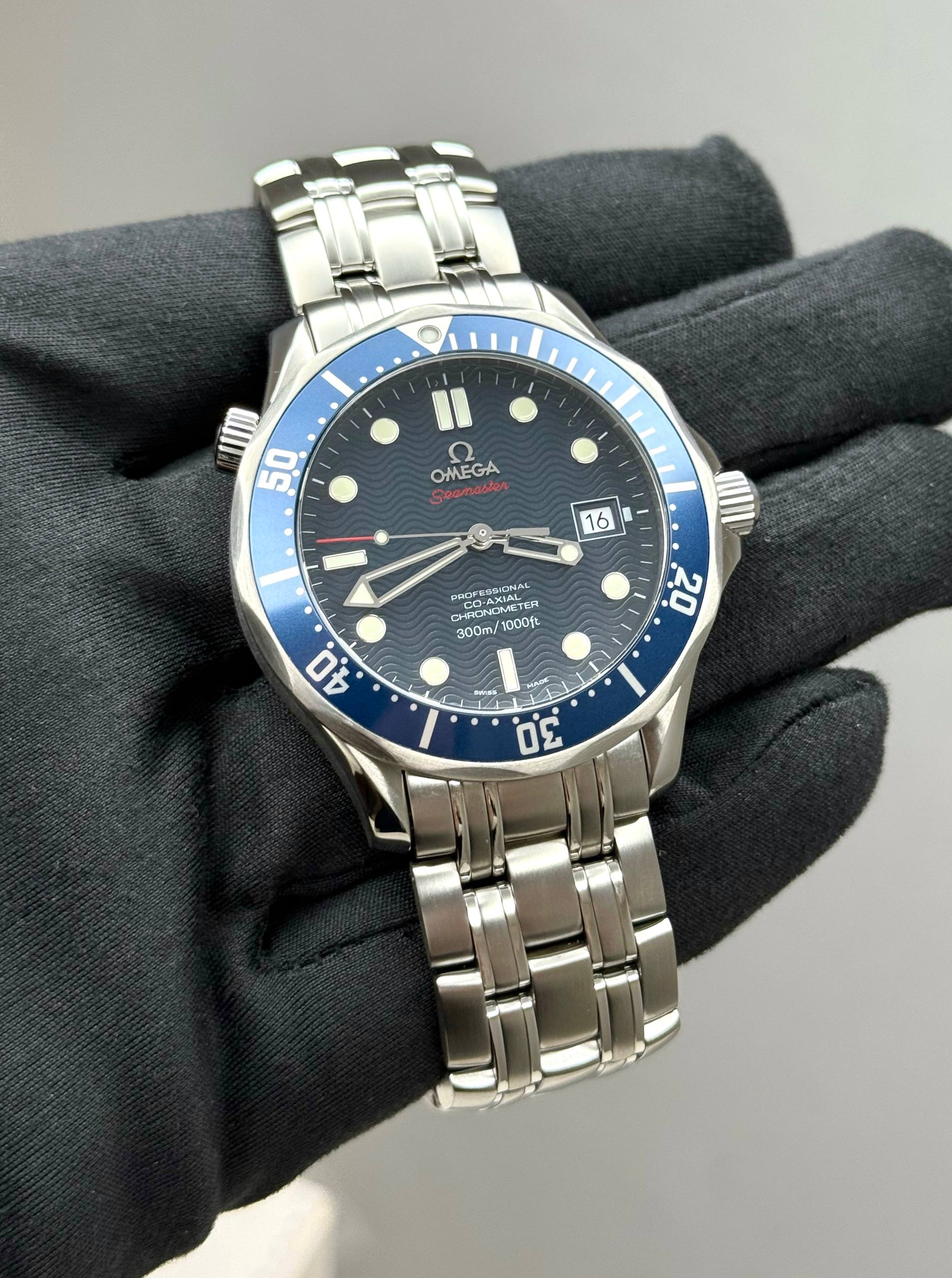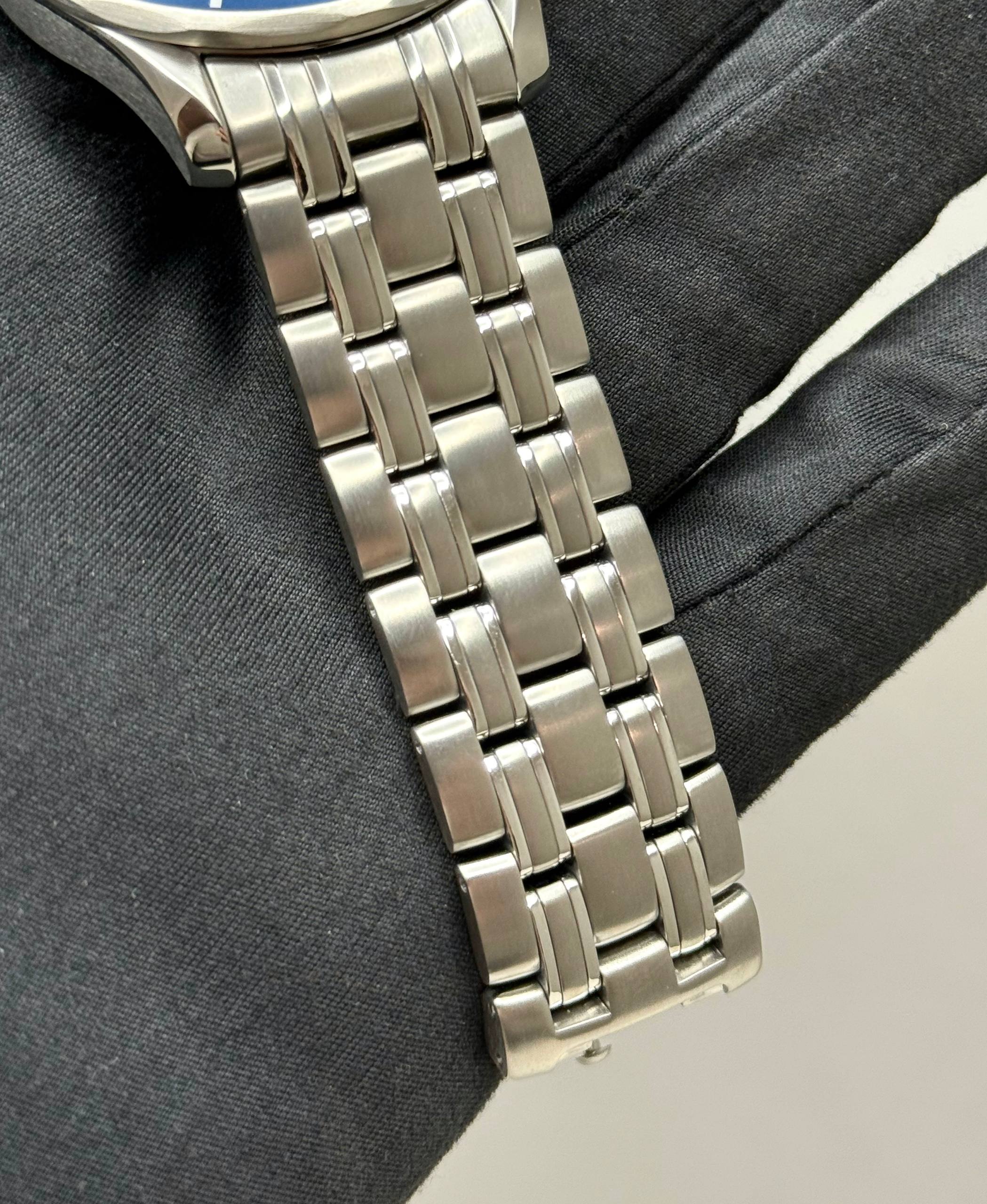 Бренд: Omega; Кому: Мужские; Состояние: Как новые; Механизм: Механика с автоподзаводом; Ремешок: Сталь; Материал: Сталь; Стекло: Сапфировое; Форма: Круг; Застежка: Раскладывающаяся; Материал застежки: Сталь; Комплектация: Переноска; Водонепроницаемость : 300 м; Запас хода: 48 ч; Калибр: Omega 2500; Страна: Швейцария; Циферблат: Синий; Браслет: 18.5 см; Размер корпуса: 41 мм; Функции: Дата, часы, минуты, секунды;