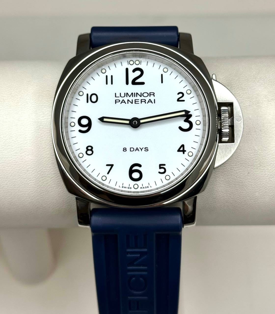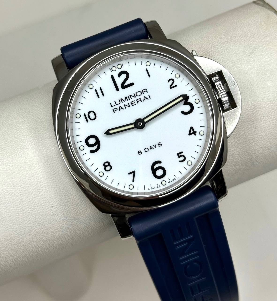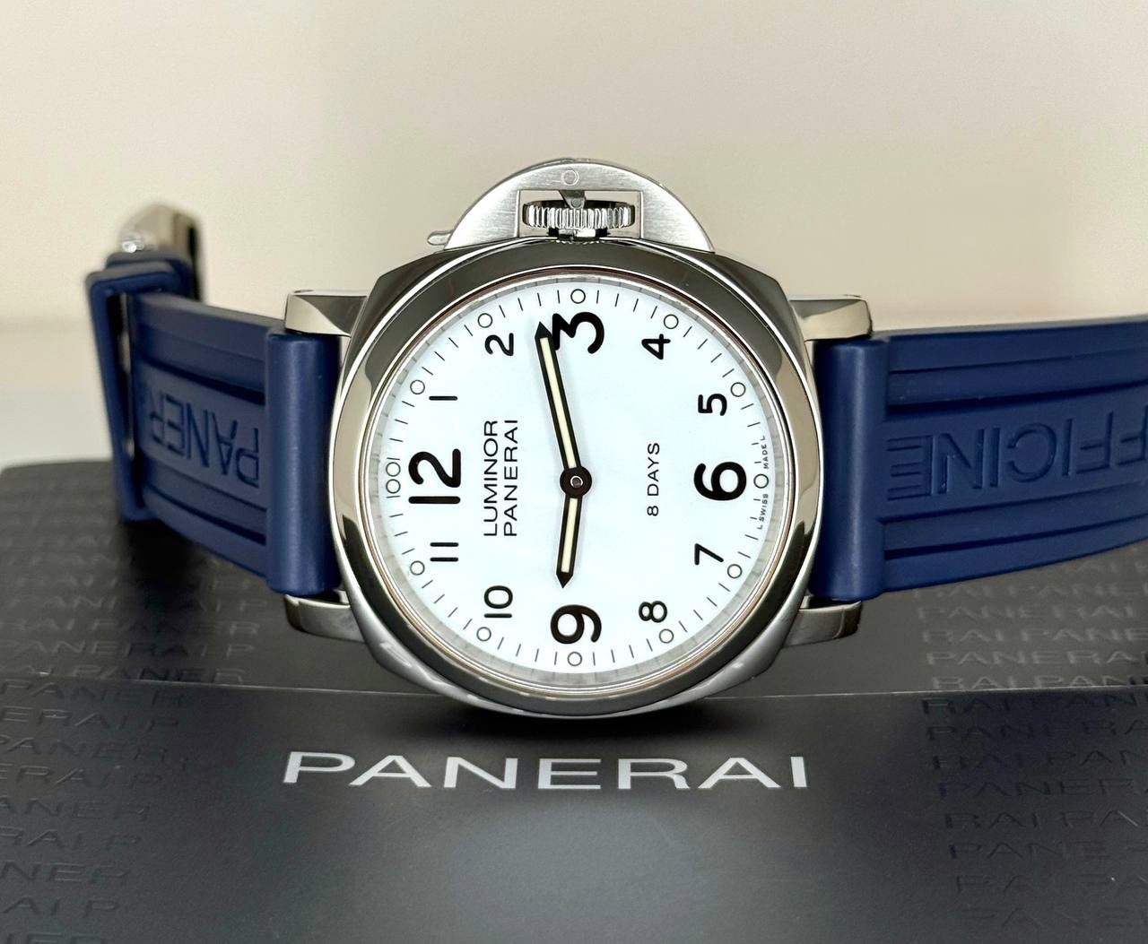 Бренд: Panerai; Кому: Мужские; Состояние: С пробегом; Механизм: С ручным заводом; Ремешок: Каучук; Материал: Сталь; Стекло: Сапфировое; Форма: Круг; Застежка: Пряжка; Материал застежки: Сталь; Комплектация: Документы, переноска; Год: 2017; Водонепроницаемость : 300 м; Запас хода: 192 ч; Калибр: P.500; Цвет ремешка: Синий; Циферблат: Белый; Размер корпуса: 44 мм; Функции: Часы, минуты;