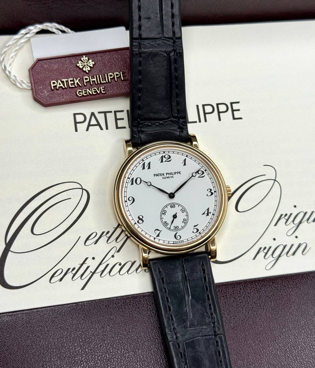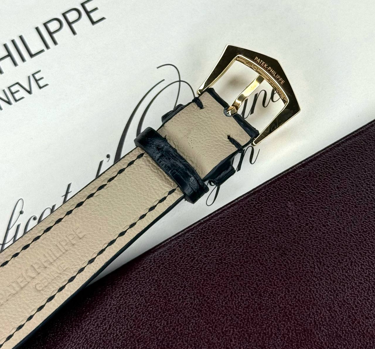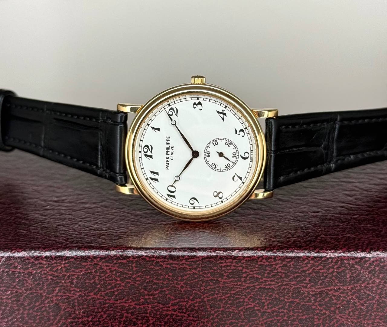 Бренд: Patek Philippe; Кому: Унисекс; Состояние: Как новые; Коллекция: Calatrava; Механизм: С ручным заводом; Ремешок: Кожа; Материал: Желтое золото; Стекло: Сапфировое; Форма: Круг; Застежка: Пряжка; Материал застежки: Желтое золото; Комплектация: Коробка, документы; Год: 2002; Водонепроницаемость : 30 м; Калибр: 215; Страна: Швейцария; Цвет ремешка: Черный; Циферблат: Белый; Размер ремешка: 23.5 см; Размер корпуса: 33 мм; Функции: Часы, минуты, секунды;