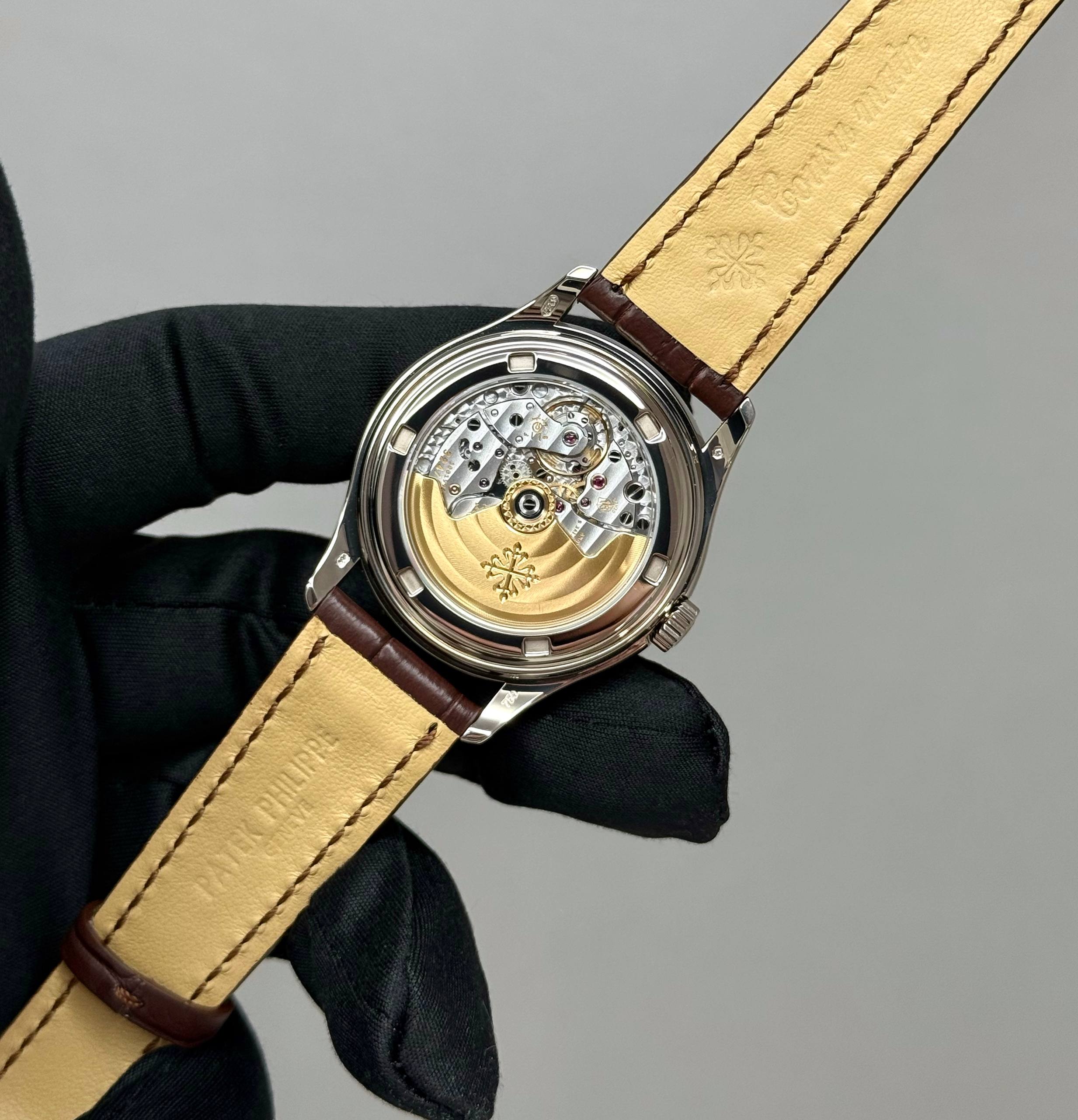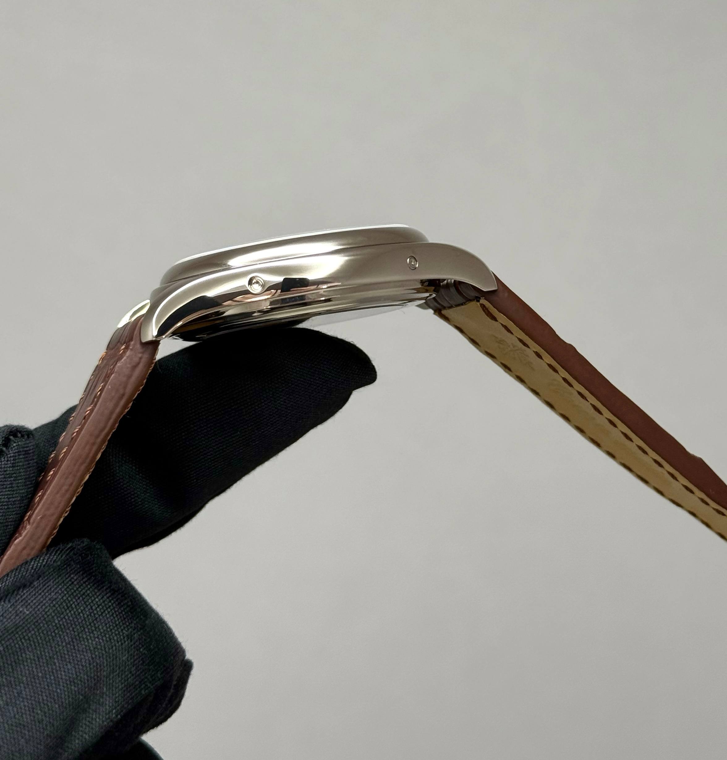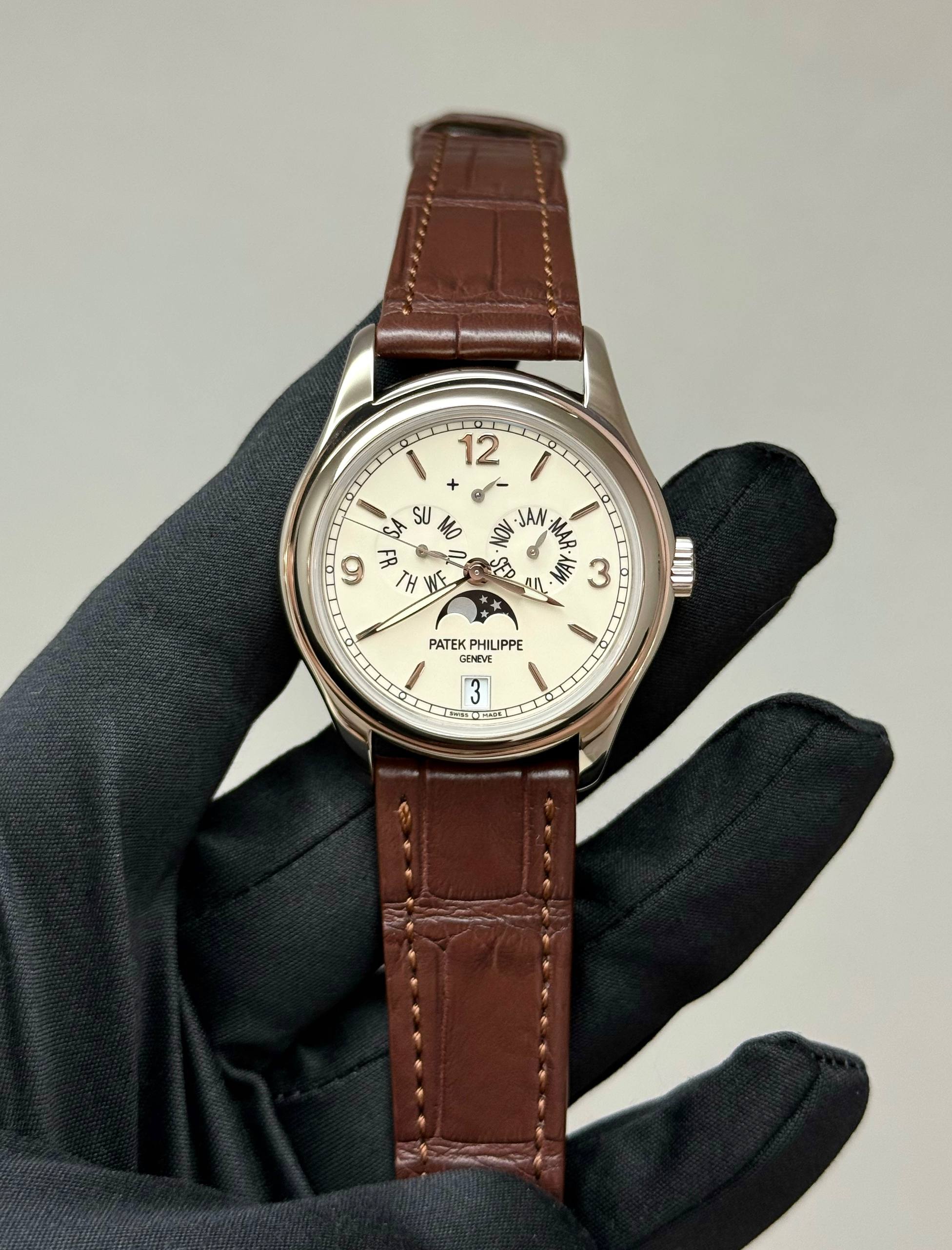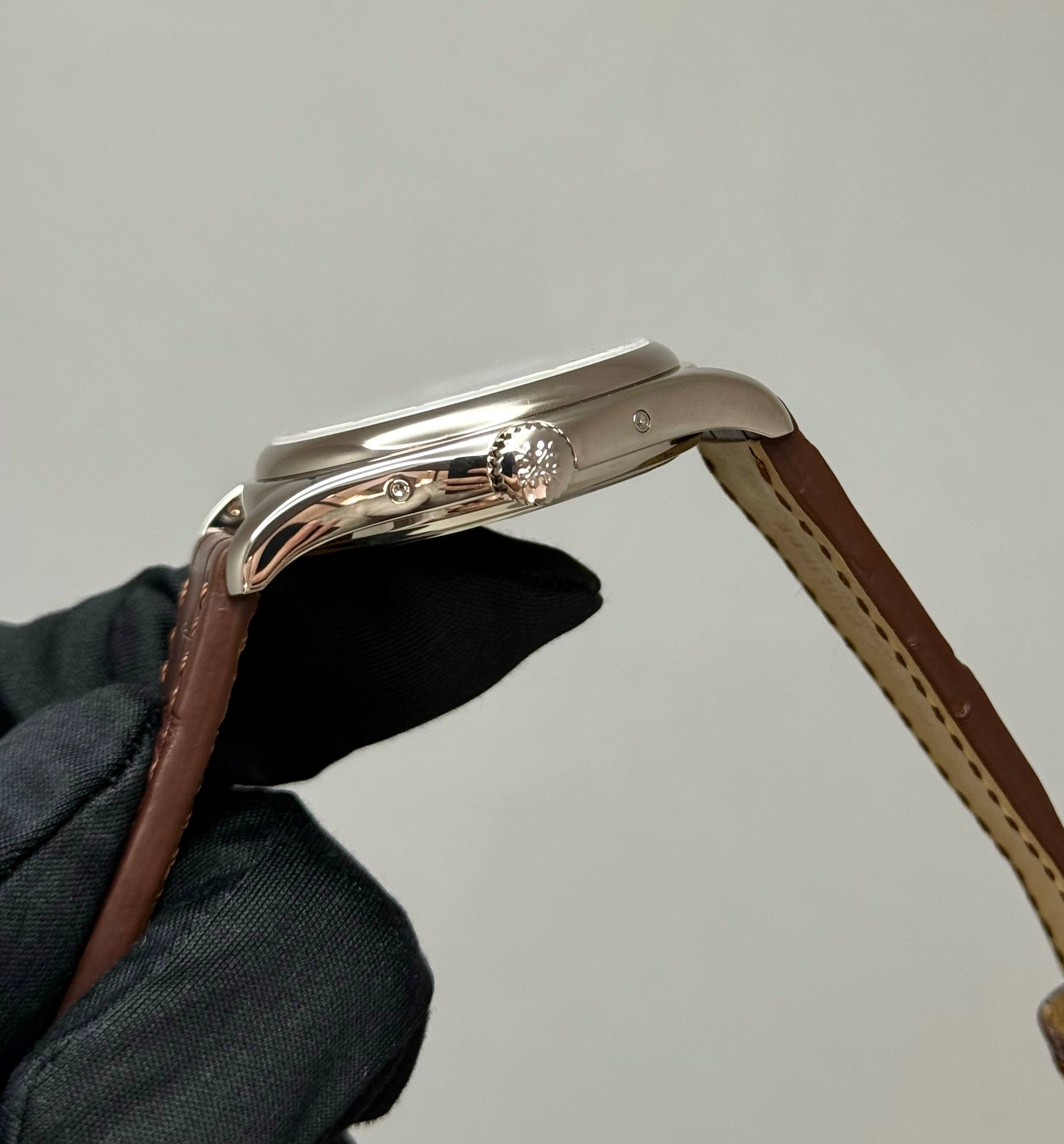 Бренд: Patek Philippe; Кому: Мужские; Состояние: Как новые; Механизм: Механика с автоподзаводом; Ремешок: Кожа; Материал: Белое золото; Стекло: Сапфировое; Форма: Круг; Застежка: Раскладывающаяся; Материал застежки: Белое золото; Комплектация: документы,2009 год; Водонепроницаемость : 30 м; Запас хода: до 45 часов; Калибр: 324 S IRM QA LU; Циферблат: кремовый; Размер: 39 мм; Функции: Часы, Минуты, Секунды, Годовой календарь, Индикация запаса хода;