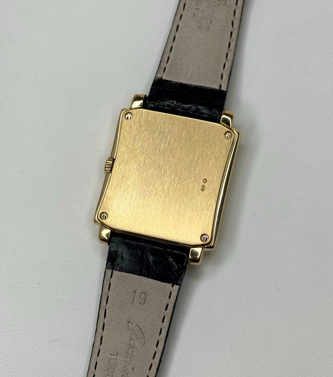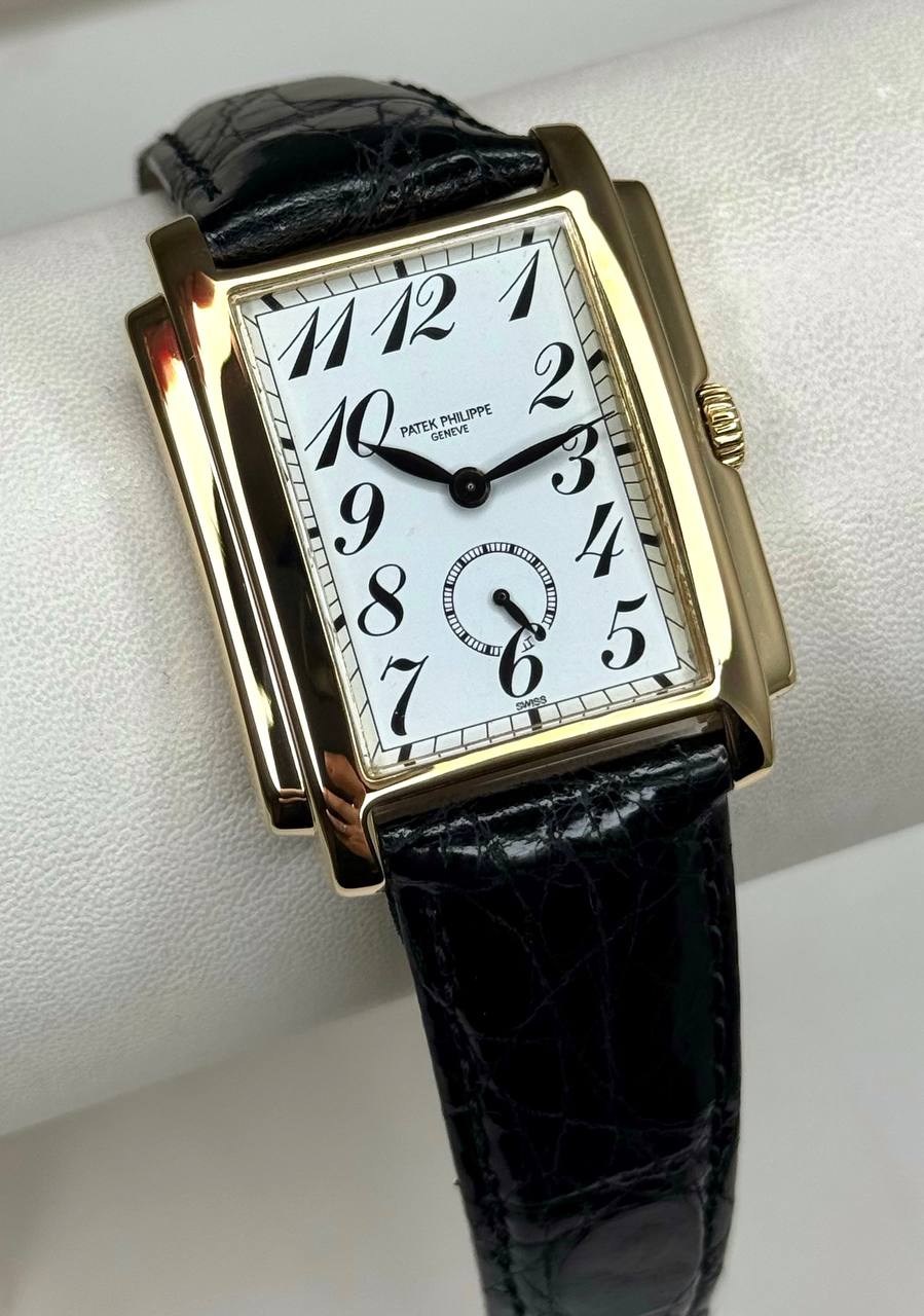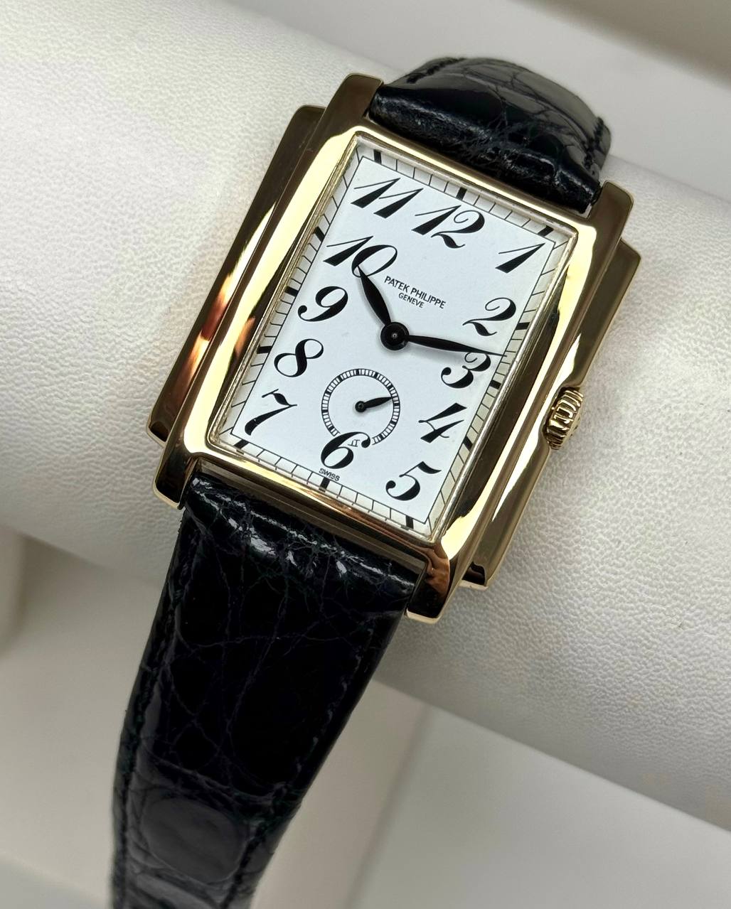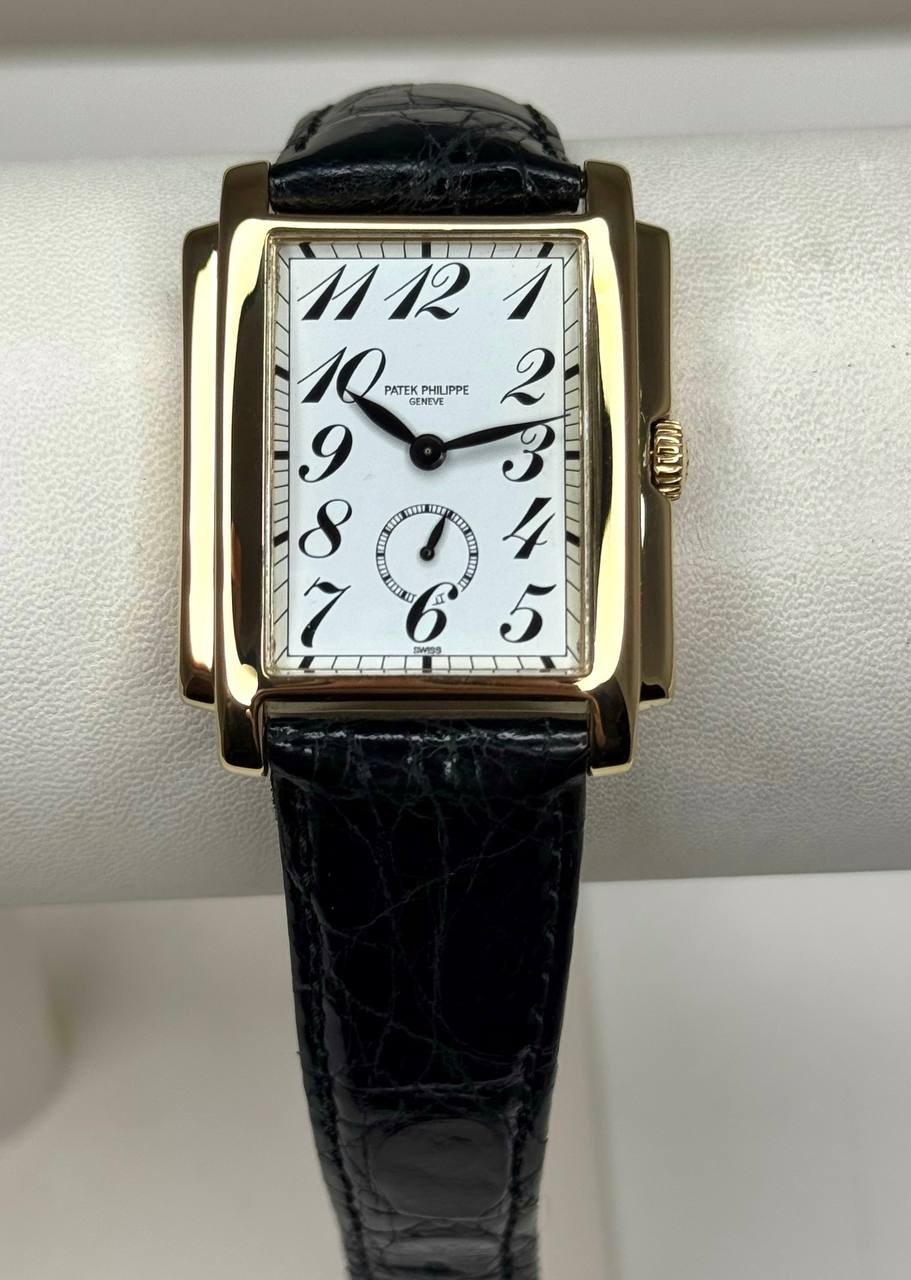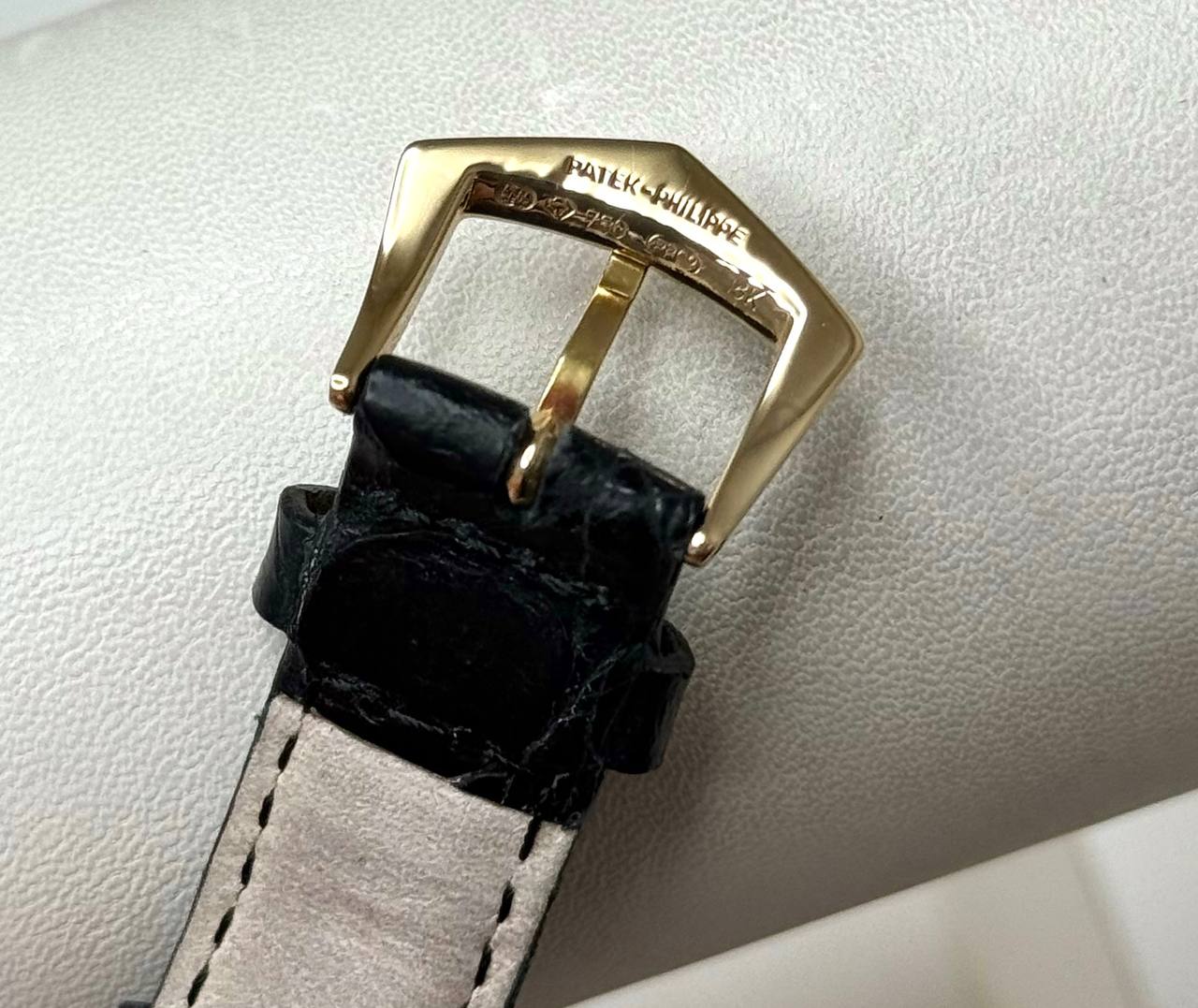 Бренд: Patek Philippe; Кому: Мужские; Состояние: С пробегом; Механизм: С ручным заводом; Ремешок: Кожа; Материал: Желтое золото; Стекло: Сапфировое; Форма: Прямоугольник; Застежка: Пряжка; Материал застежки: Желтое золото; Комплектация: Переноска; Водонепроницаемость : 30 м; Страна: Швейцария; Циферблат: Белый; Размер ремня: 23.5 см; Размер корпуса: 30 х 38 мм; Вес: 55.68 гр; Функции: Часы, минуты, секунды;