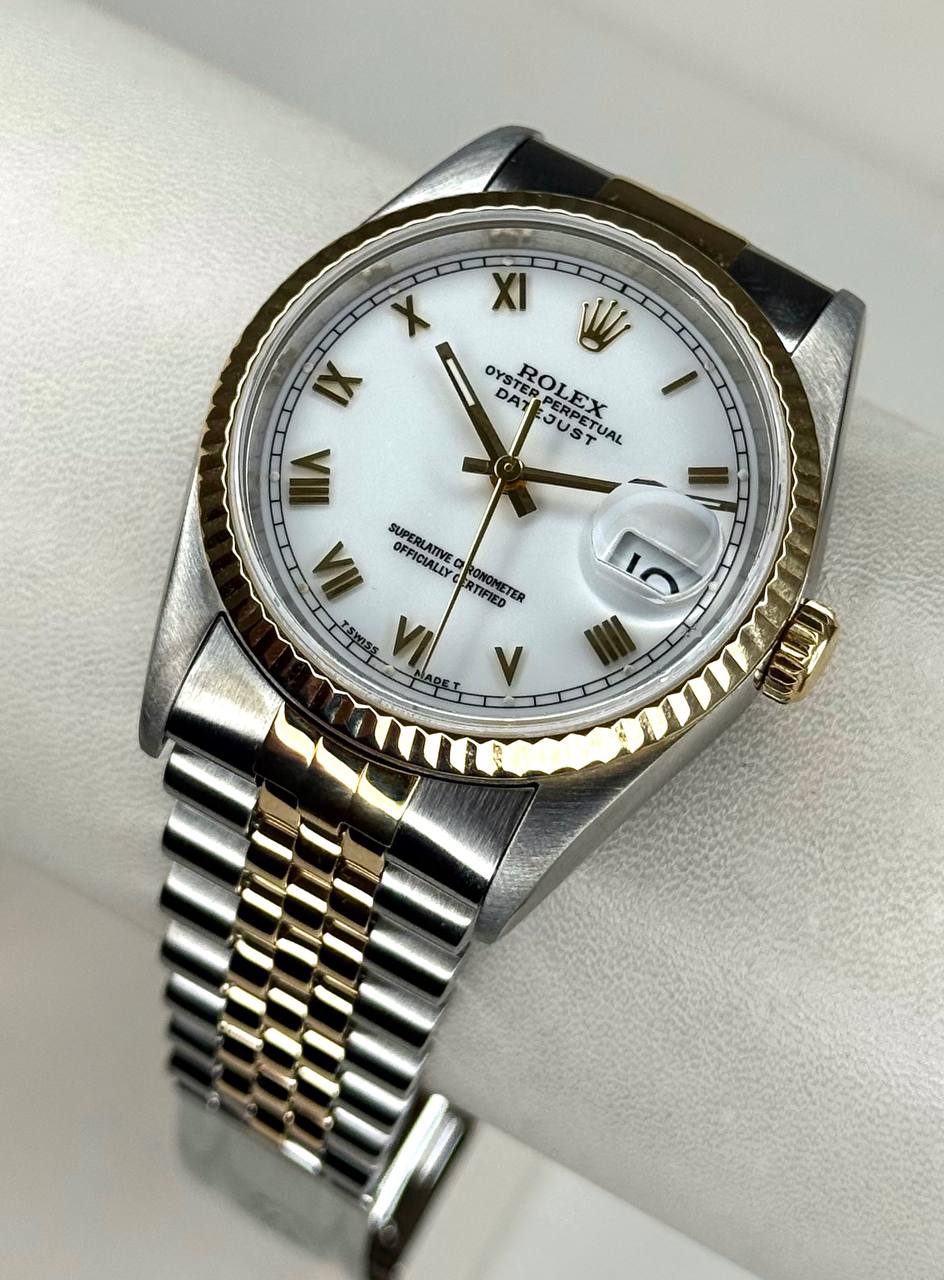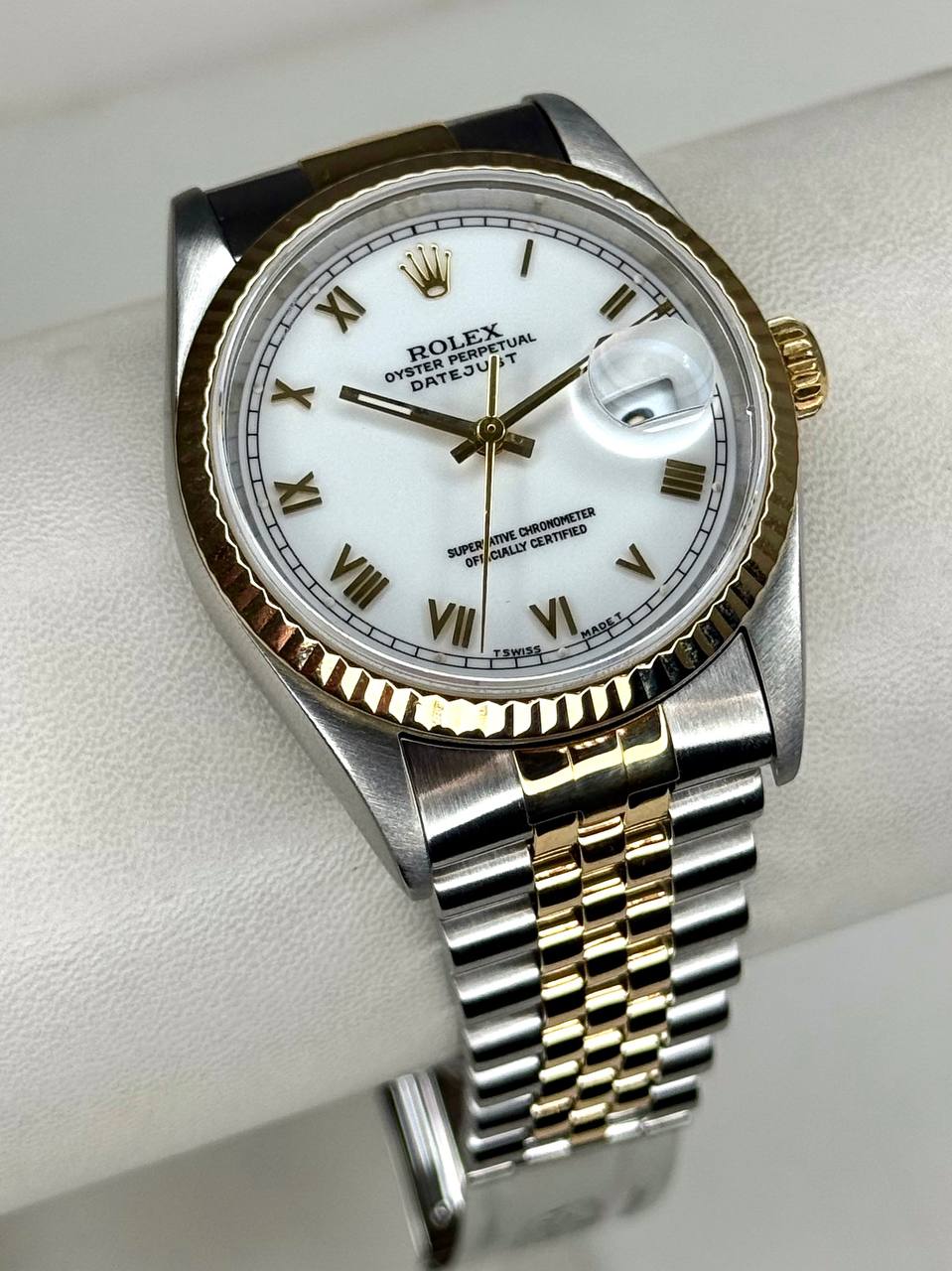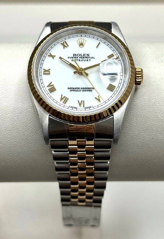 Бренд: Rolex; Кому: Унисекс; Состояние: С пробегом; Механизм: Механика с автоподзаводом; Ремешок: Золото/сталь; Материал: Золото/сталь; Стекло: Сапфировое; Форма: Круг; Застежка: Раскладывающаяся; Материал застежки: Золото/сталь; Комплектация: Переноска; Год: 1996-1997; Водонепроницаемость : 100 м; Запас хода: 48 ч; Калибр: 3135; Страна: Швейцария; Циферблат: Белый; Размер браслета: 16 см; Размер корпуса: 36 мм; Функции: Дата, часы, минуты, секунды;