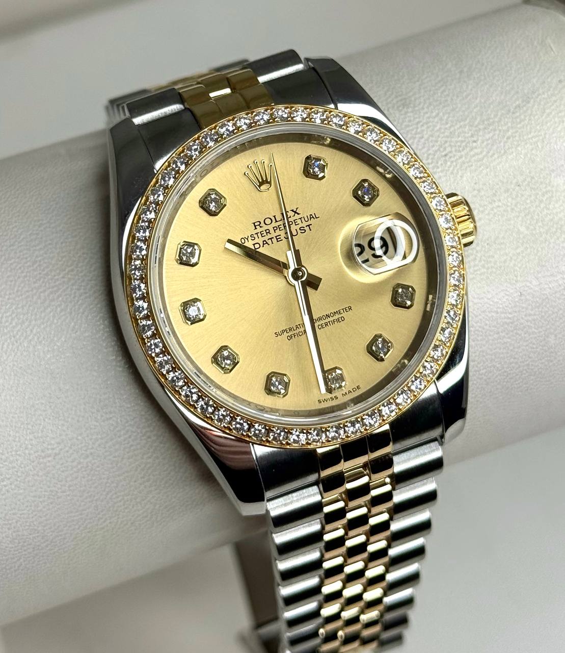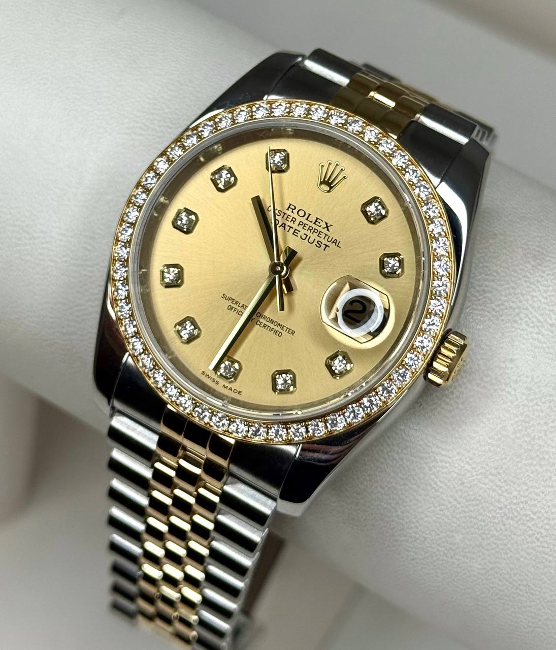 Инкрустирован белыми бриллиантами. Заводское исполнение