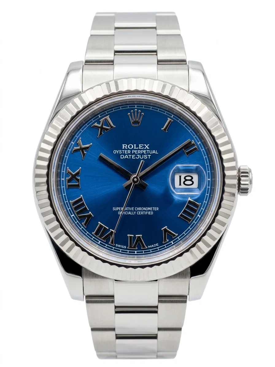 Бренд: Rolex; Кому: Унисекс; Состояние: Как новые; Механизм: Механика с автоподзаводом; Ремешок: Сталь; Материал: Сталь; Стекло: Сапфировое; Форма: Круг; Застежка: Раскладывающаяся; Материал застежки: Сталь; Комплектация: Документы, переноска; Материал безеля: Белое золото; Водонепроницаемость : 100 м; Страна: Швейцария; Циферблат: Синий; Размер браслета: 12 звеньев (18 см); Функции: Дата, часы, минуты, секунды;