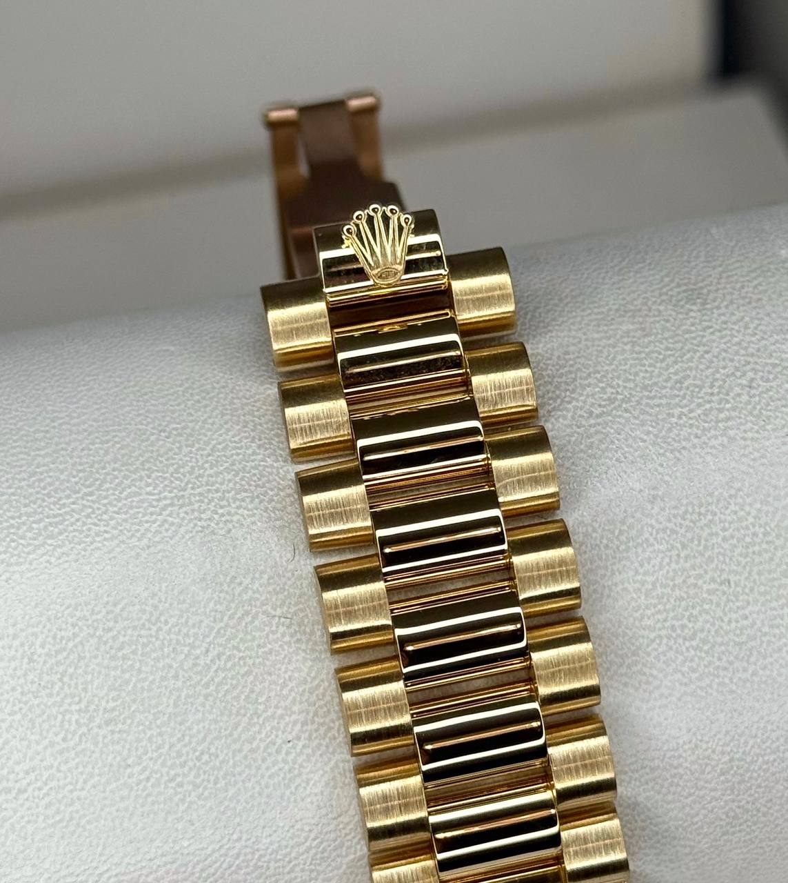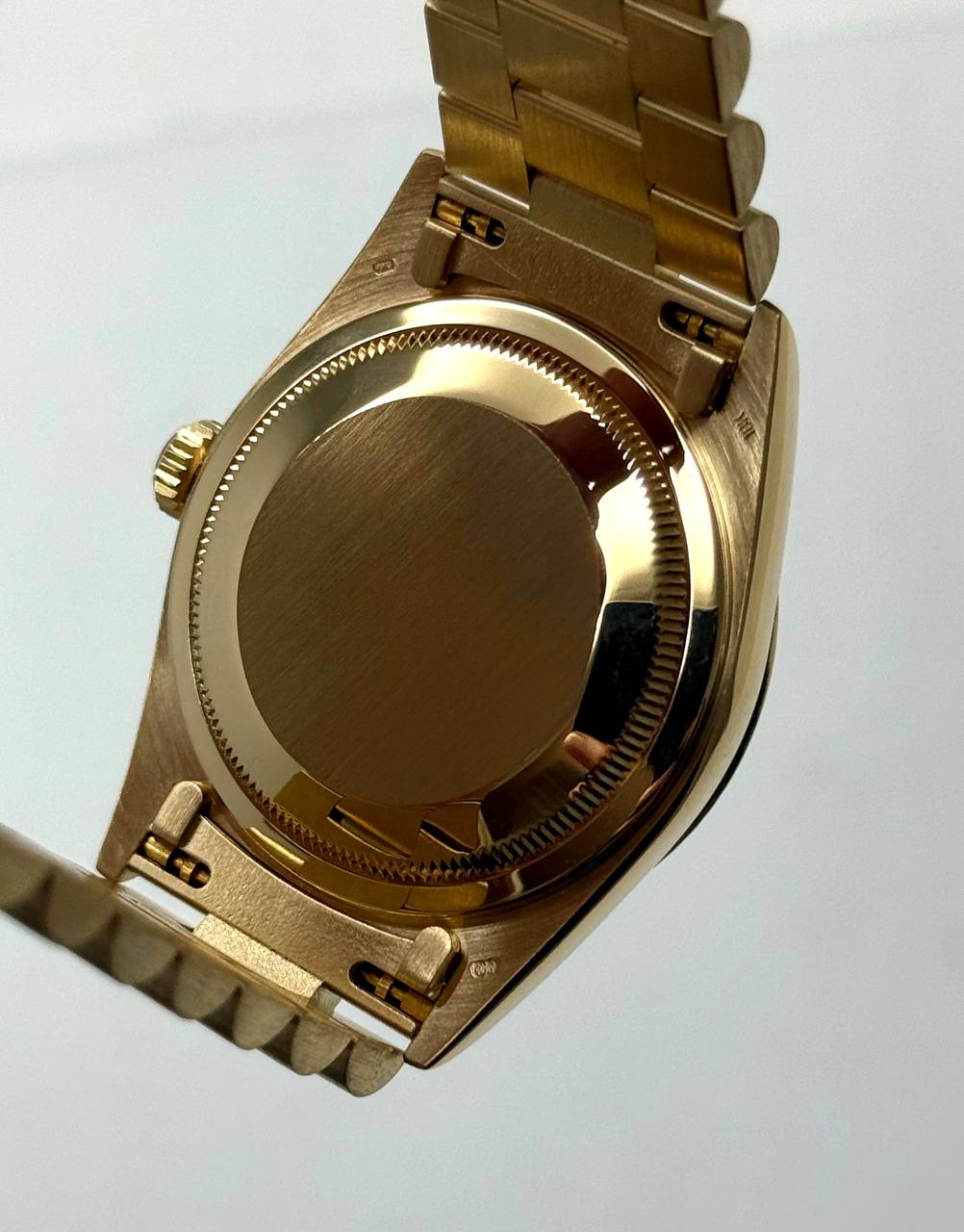 Бренд: Rolex; Кому: Унисекс; Состояние: Как новые; Механизм: Механика с автоподзаводом; Ремешок: Золото; Материал: Золото; Стекло: Сапфировое; Форма: Круг; Застежка: Раскладывающаяся; Материал застежки: Золото; Комплектация: Переноска; Вес: 128.75 гр; Водонепроницаемость : 100 м; Запас хода: 48 ч; Страна: Швейцария; Циферблат: Золотистый; Размер браслета: 18 звеньев (15.5 см); Размер корпуса: 36 мм; Функции: Дата, часы, минуты, секунды, день недели;