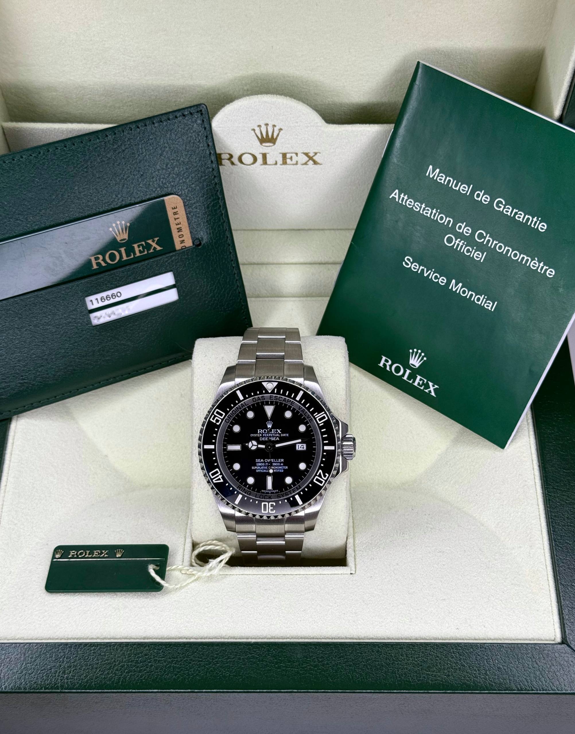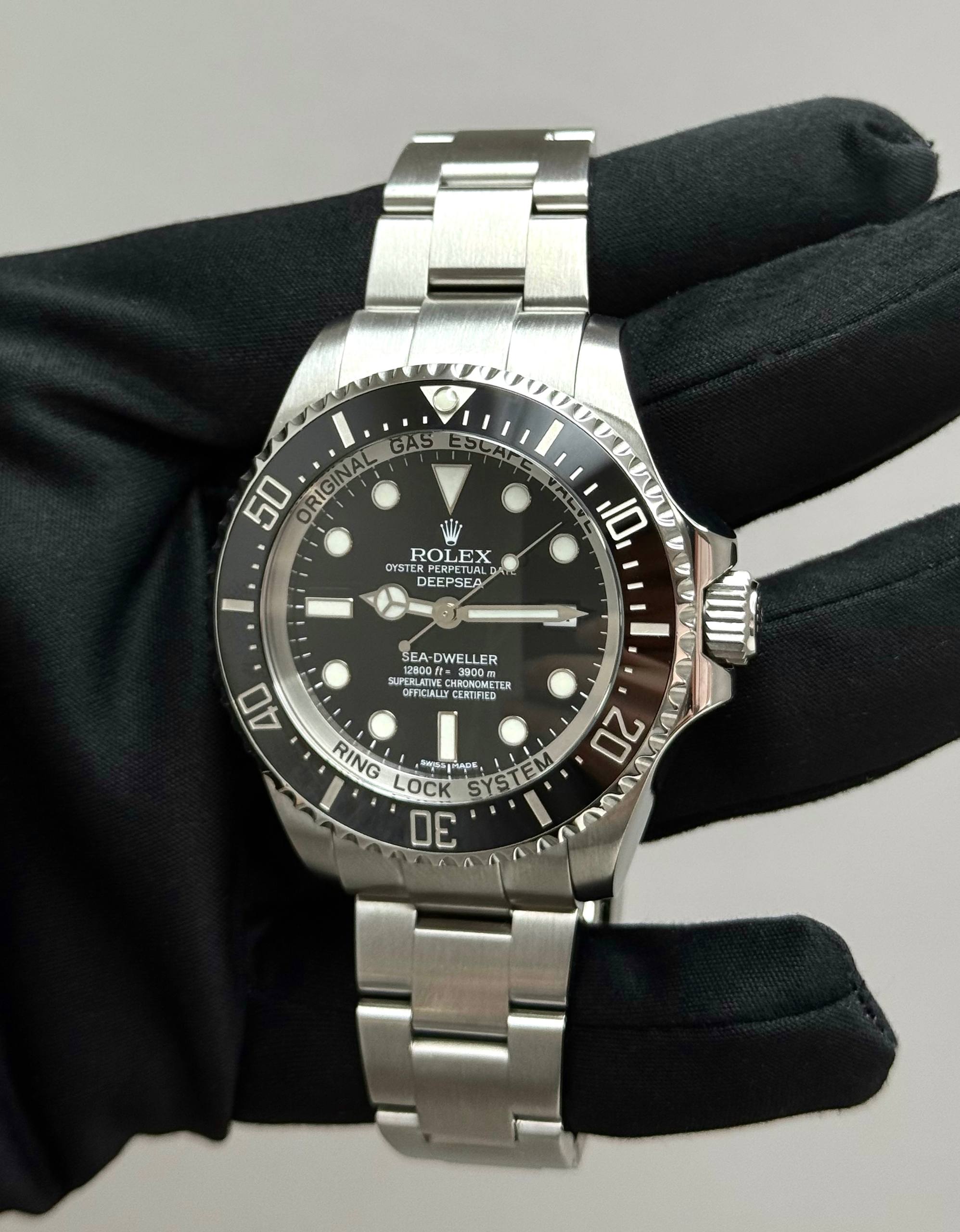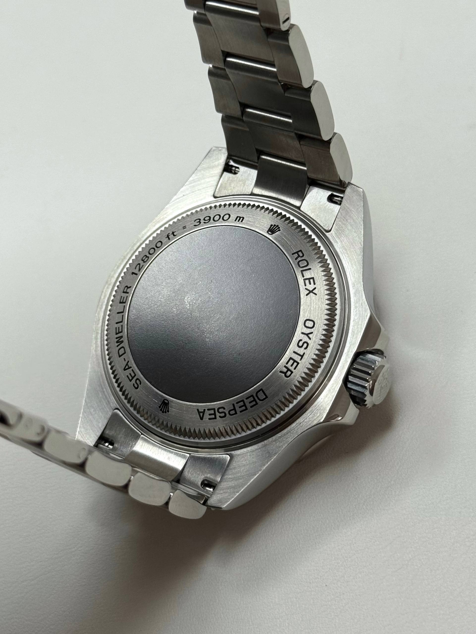 Бренд: Rolex; Кому: Мужские; Состояние: С пробегом; Механизм: Механика с автоподзаводом; Ремешок: Сталь; Материал: Сталь; Стекло: Сапфировое; Форма: Круг; Застежка: Раскладывающаяся; Материал застежки: Сталь; Комплектация: Коробка, документы; Год: 2013; Водонепроницаемость : 3900 м; Запас хода: 48 ч; Калибр: 3135; Страна: Швейцария; Циферблат: Черный; Размер браслета: 9 звеньев (18 см); Функции: Дата, часы, минуты, секунды, гелиевый клапан декомпрессии;