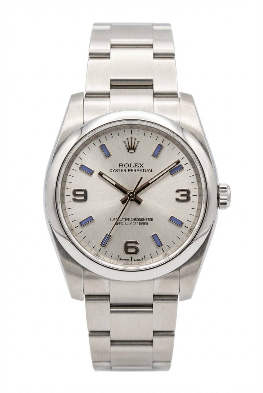 Бренд: Rolex; Кому: Унисекс; Состояние: Как новые; Механизм: Механика с автоподзаводом; Стекло: Сапфировое; Комплектация: документы,2014 год; Материал: Нержавеющая сталь; Водонепроницаемость (м): 100; Запас хода: 48 часов; Браслет: 12 звеньев; Циферблат: Серебристый; Размер: 34 мм; Функции: Часы, минуты, секунды;
