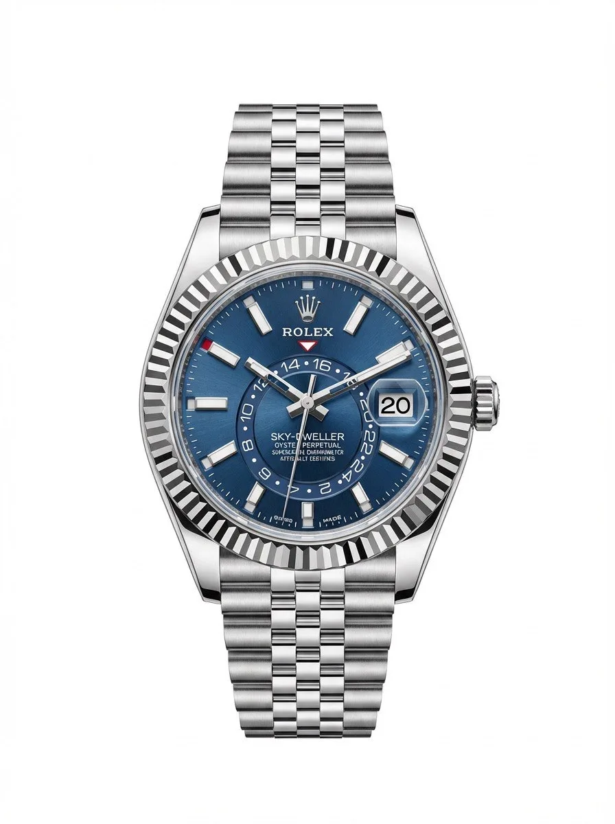 Бренд: Rolex; Кому: Унисекс; Механизм: Механика с автоподзаводом; Ремешок: Сталь; Материал: Сталь; Стекло: Сапфировое; Форма: Круг; Застежка: Раскладывающаяся; Материал застежки: Сталь; Комплектация: Коробка, документы; Год: 2025; Водонепроницаемость : 100 м; Запас хода: 72 ч; Калибр: 90001; Материал безеля: Белое золото; Страна: Швейцария; Циферблат: Синий; Размер корпуса: 42 мм; Функции: Дата, часы, минуты, секунды, второй часовой пояс, месяц;