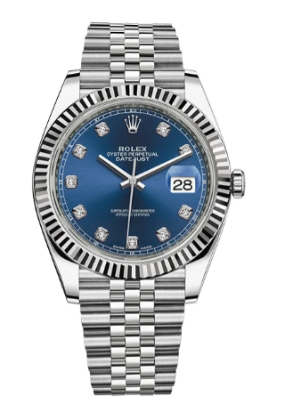 Бренд: Rolex; Кому: Унисекс; Состояние: Как новые; Механизм: Механика с автоподзаводом; Ремешок: Сталь; Стекло: Сапфировое; Форма: Круг; Застежка: Раскладывающаяся; Материал застежки: Сталь; Комплектация: Коробка; Материал корпуса: Сталь; Материал безеля: Белое золото; Запас хода: 70 ч; Калибр: 3235; Водонепроницаемость : 100 м; Страна: Швейцария; Циферблат: Синий, 10 белых бриллиантов; Размер браслета: 17.5 см; Размер корпуса: 41 мм; Функции: Дата, часы, минуты, секунды;