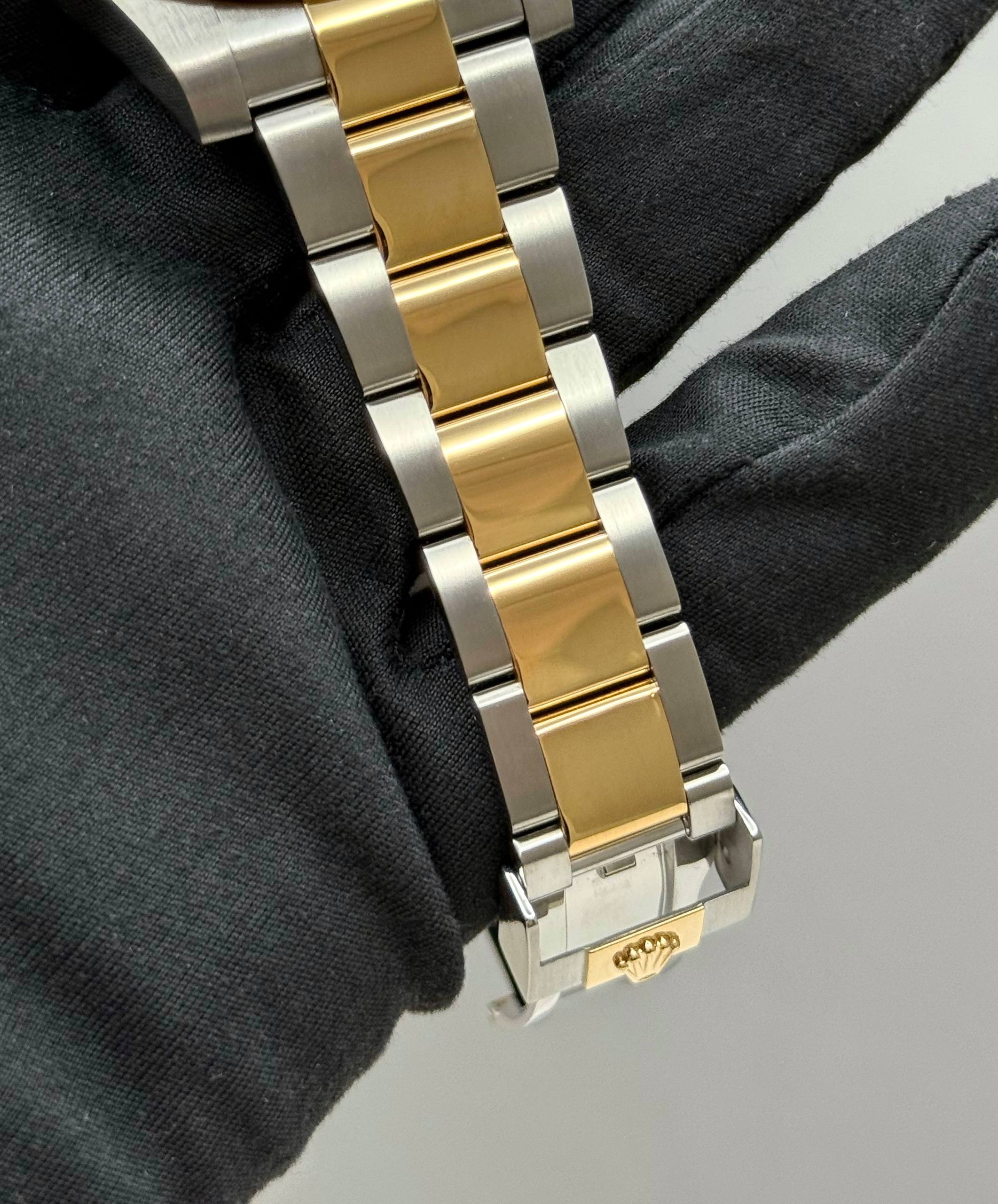 Бренд: Rolex; Кому: Унисекс; Состояние: Как новые; Механизм: Механика с автоподзаводом; Ремешок: Золото/сталь; Материал: Золото/сталь; Стекло: Сапфировое; Форма: Круг; Застежка: Раскладывающаяся; Материал застежки: Золото/сталь; Комплектация: Отсутствует; Водонепроницаемость : 300 м; Запас хода: 48 ч; Калибр: 3135; Страна: Швейцария; Циферблат: Синий; Браслет: 11 звеньев; Размер корпуса: 40 мм; Функции: Дата, часы, минуты, секунды;