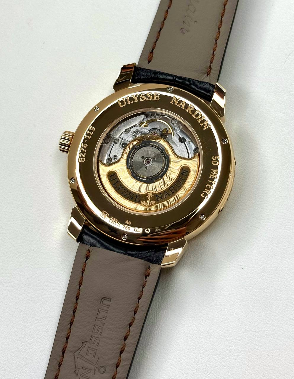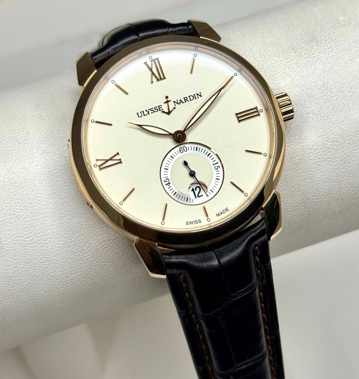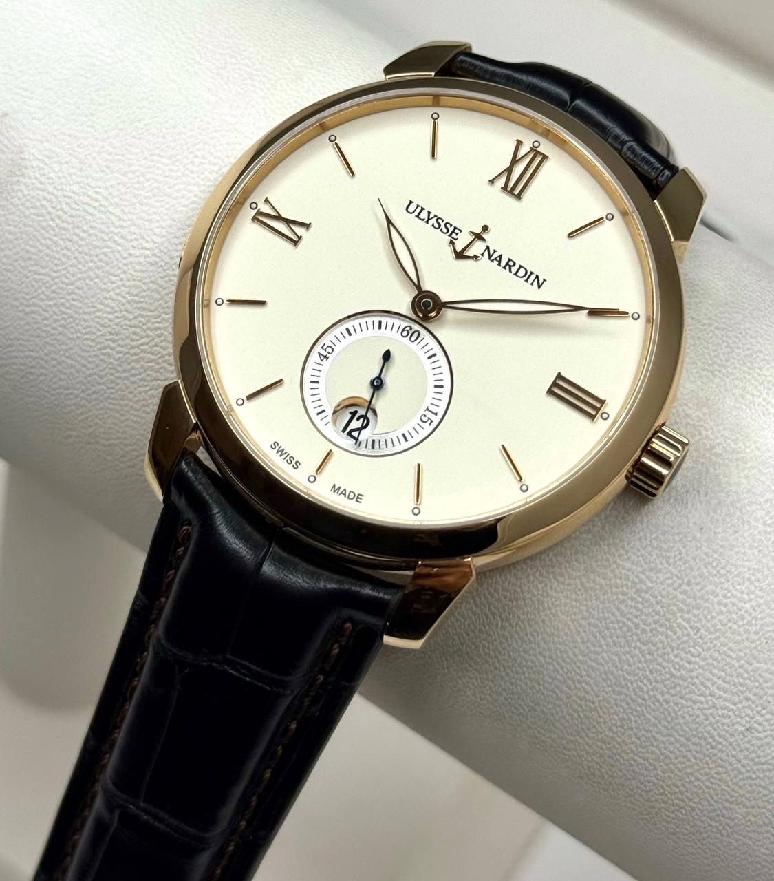 Бренд: Ulysse Nardin; Кому: Мужские; Состояние: С пробегом; Коллекция: Classical; Механизм: Механика с автоподзаводом; Ремешок: Кожа аллигатора; Материал: Розовое золото; Стекло: Сапфировое; Форма: Круг; Застежка: Пряжка; Водонепроницаемость (м): 50 м; Запас хода: 42 ч; Калибр: UN27-03950; Страна: Швейцария; Комплектация: Отсутствует; Циферблат: Белый; Размер корпуса: 40 мм; Функции: Дата, часы, минуты, секунды;