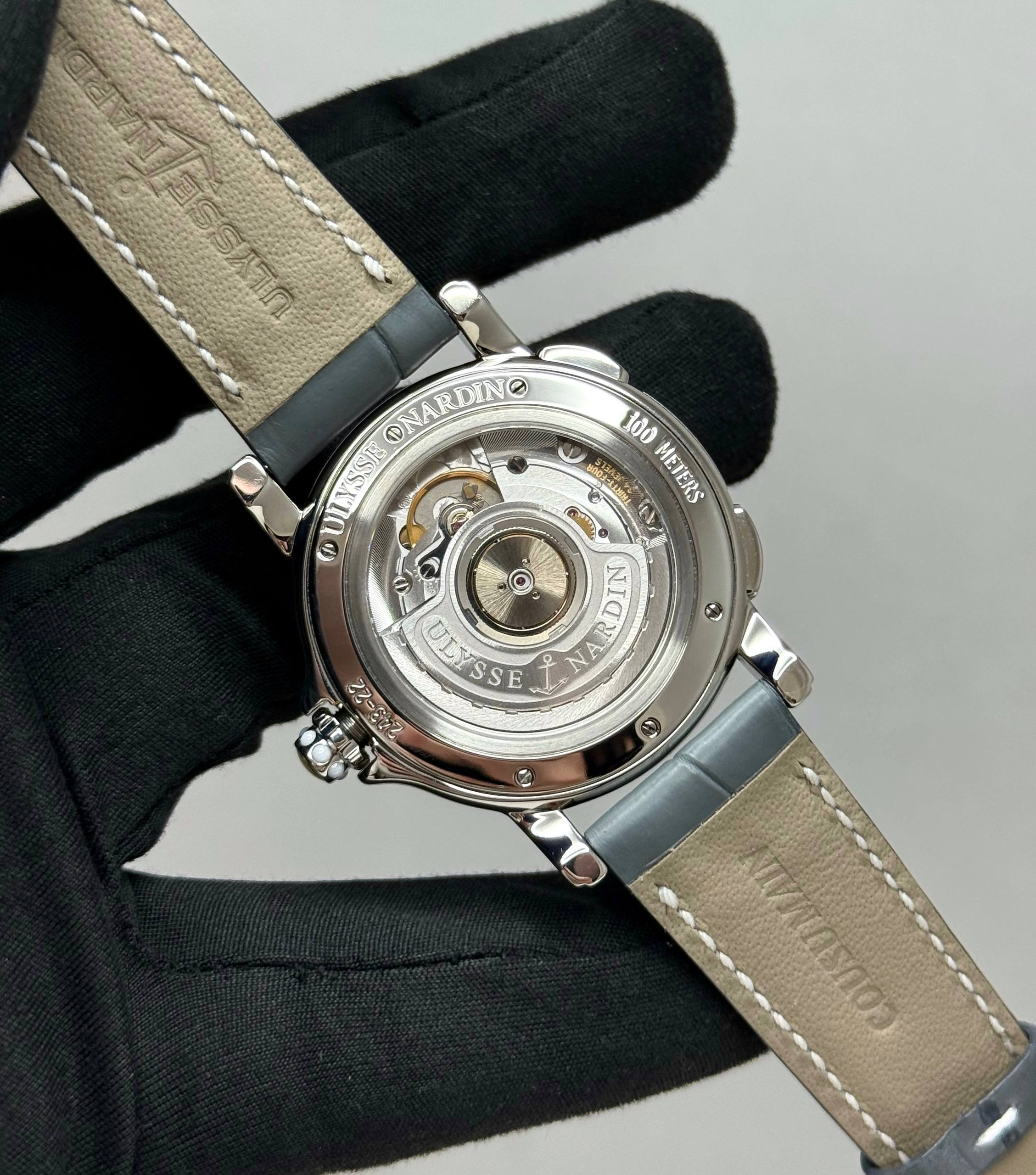 Бренд: Ulysse Nardin; Кому: Женские; Состояние: С пробегом; Механизм: Механика с автоподзаводом; Ремешок: Кожа; Материал: Сталь; Стекло: Сапфировое; Форма: Круг; Застежка: Раскладывающаяся; Материал застежки: Сталь; Комплектация: Документы, 2014 год; Материал: Сталь; Водонепроницаемость (м): 100; Запас хода: 48; Страна: Швейцария; Размер корпуса: 37; Функции: Дата, часы, минуты, секунды, Двойное время;