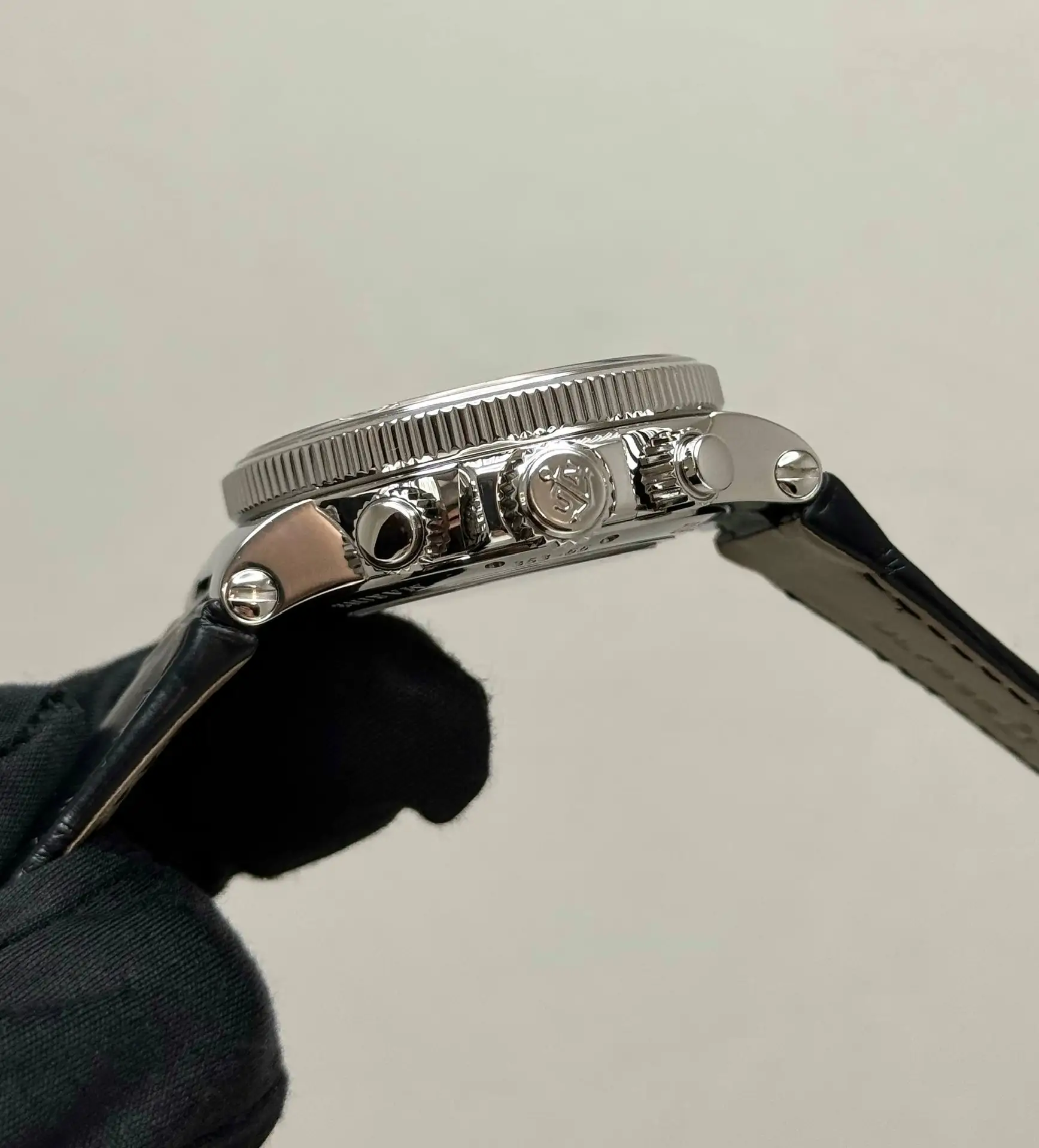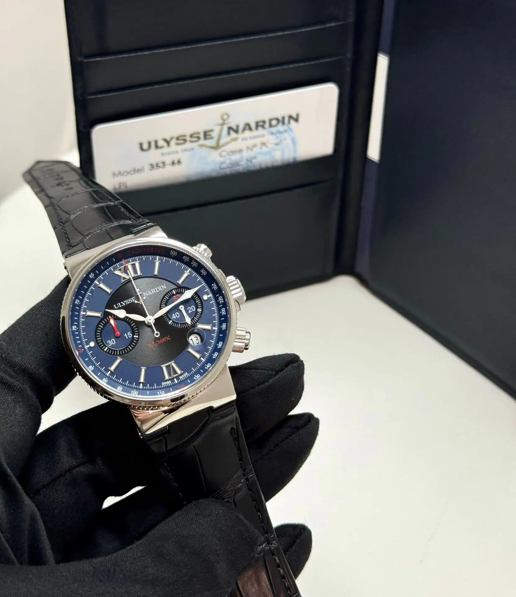 Бренд: Ulysse Nardin; Кому: Мужские; Состояние: Как новые; Механизм: Механика с автоподзаводом; Ремешок: Кожа; Материал: Сталь; Стекло: Сапфировое; Форма: Круг; Застежка: Раскладывающаяся; Материал застежки: Сталь; Комплектация: Документы, переноска; Водонепроницаемость : 200 м; Запас хода: 42 ч; Калибр: UN-35; Страна: Швейцария; Цвет ремешка: Черный; Циферблат: Синий; Размер корпуса: 41 мм; Функции: Дата, часы, минуты, секунды, хронограф;