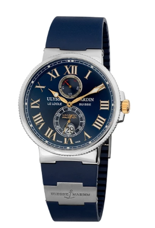 Бренд: Ulysse Nardin; Кому: Мужские; Состояние: Как новые; Механизм: Механика с автоподзаводом; Ремешок: Каучук; Материал: Золото/сталь; Стекло: Сапфировое; Форма: Круг; Застежка: Раскладывающаяся; Материал застежки: Титан; Комплектация: Переноска; Водонепроницаемость : 200 м; Запас хода: 42 ч; Калибр: UN-26; Страна: Швейцария; Цвет ремешка: Синий; Циферблат: Синий; Размер браслета: 21 см; Размер корпуса: 43 мм; Функции: Дата, часы, минуты, секунды, индикатор запаса хода;
