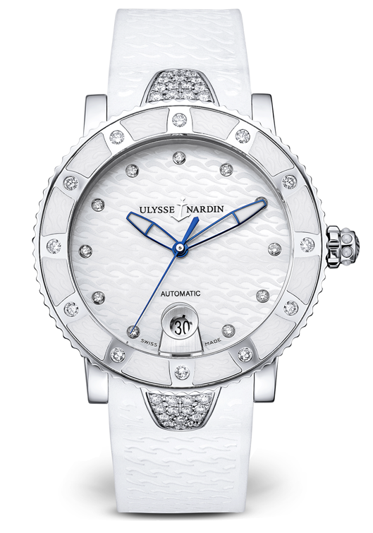 Бренд: Ulysse Nardin; Кому: Женские; Состояние: Как новые; Механизм: Механика с автоподзаводом; Материал: Сталь; Стекло: Сапфировое; Форма: Круг; Застежка: Раскладывающаяся; Материал застежки: Титан; Комплектация: Отсутствует; Водонепроницаемость : 100 м; Калибр: UN-815; Страна: Швейцария; Цвет ремешка: Белый; Циферблат: Белый, 11 белых бриллиантов; Размер ремня: 17.5 см; Размер корпуса: 40 мм; Функции: Дата, часы, минуты, секунды;