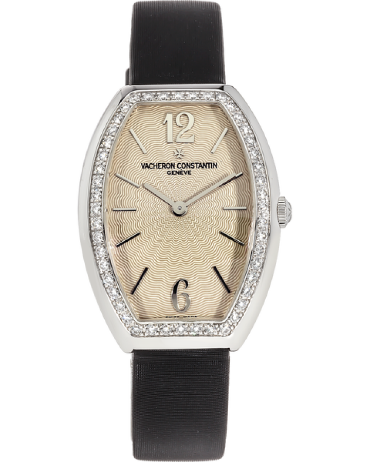 Бренд: Vacheron Constantin; Кому: Женские; Состояние: Как новые; Механизм: Кварц; Ремешок: Кожа; Материал: Золото; Стекло: Сапфировое; Форма: Бочка; Застежка: Пряжка; Материал застежки: Золото; Комплектация: Переноска; Водонепроницаемость : 30 м; Страна: Швейцария; Циферблат: Бежевый; Размер ремня: 18 см; Размер корпуса: 27 х 37 мм; Функции: Часы, минуты;